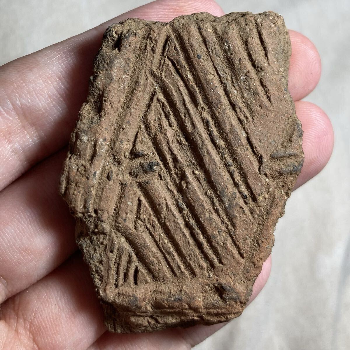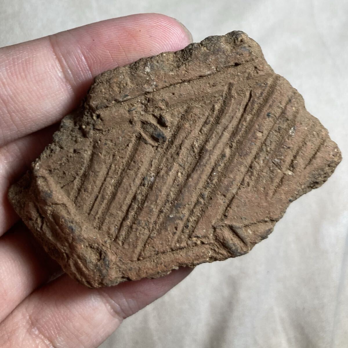 あまり市場に出回らない、縄文前期の土器片です。