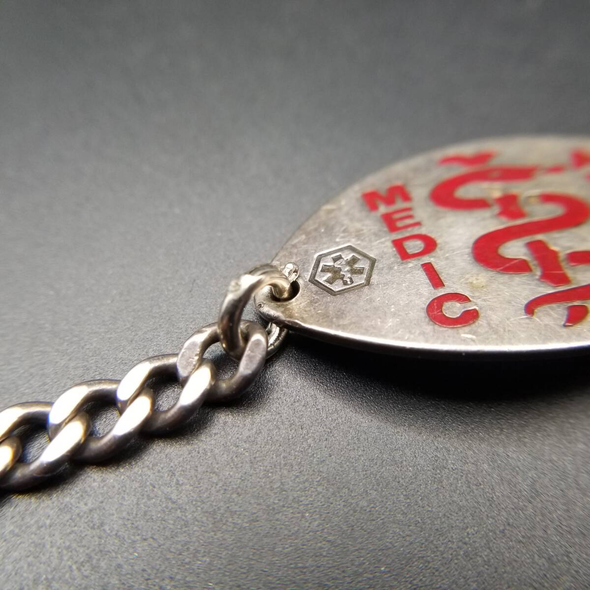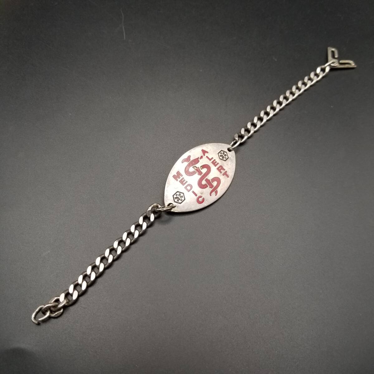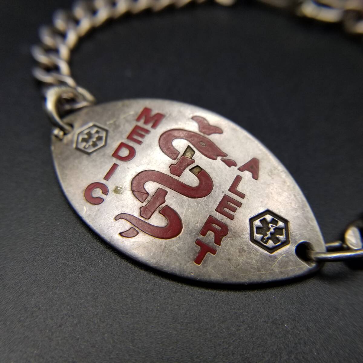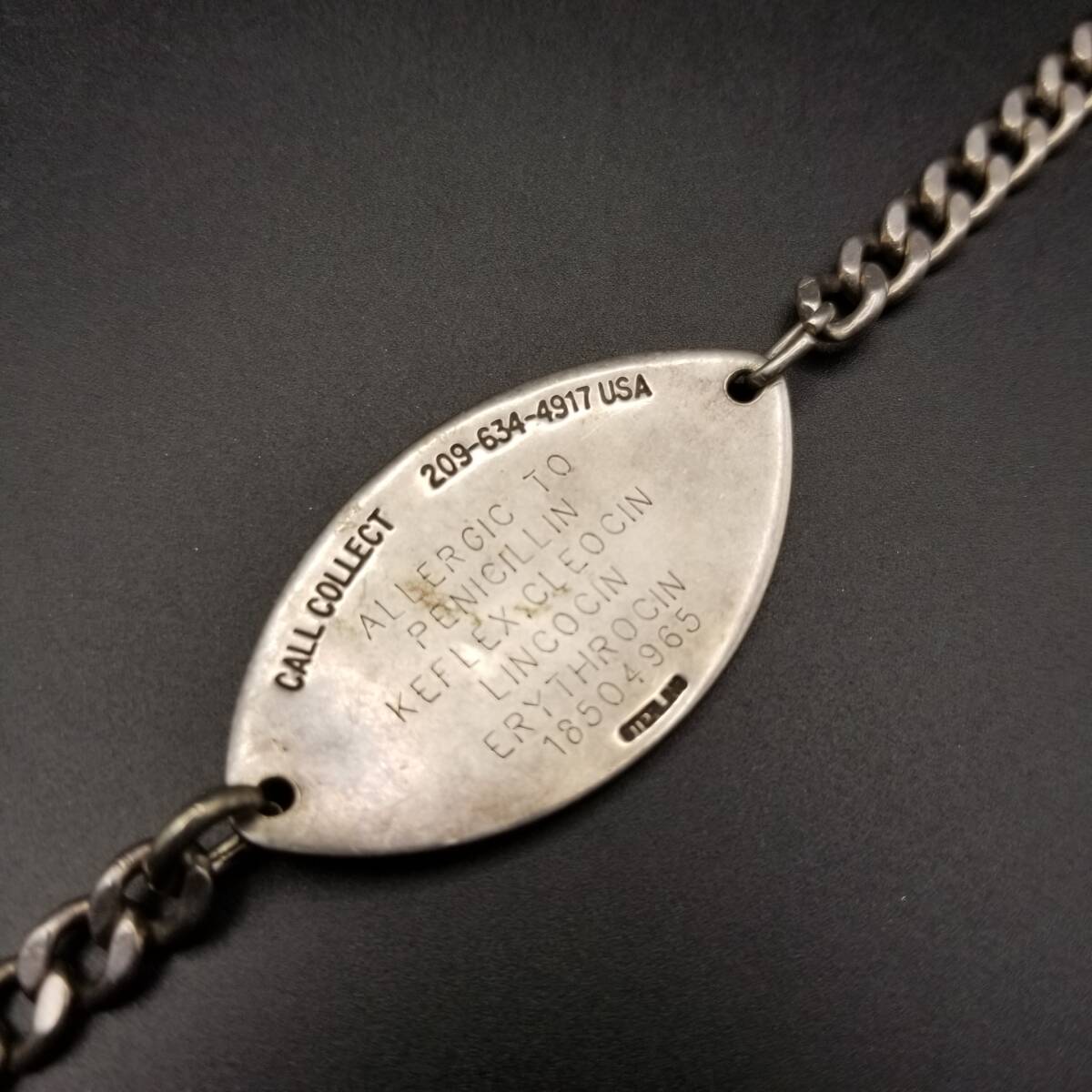 Medical Alert IDタグ オーバルプレート 925 シルバー ヴィンテージ ブレスレット 銀 メディカルアラート 紋章 Y24-S