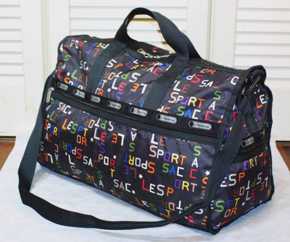 LeSportsac/レスポートサック ボストンバッグ 斜めがけショルダーバッグ ショルダーバッグ Lサイズ、ロゴプリント柄、数回使用の綺麗なお品です。仕様:ファスナー開閉、外側ファスナーポケット4つ、ショルダーストラップ取り外し可能です。サイズ:縦33㎝x横51㎝xマチ25㎝、持ち手の長さ28㎝x幅4㎝、ストラップの長さ65~113㎝x幅4㎝。商品は畳んでレターパックプラス600円で発送予定です。値下しました!