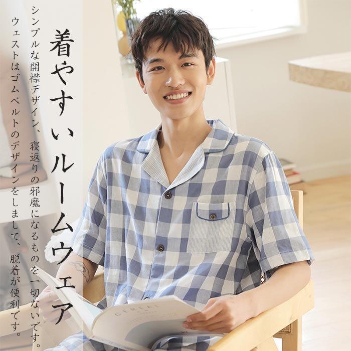 【着やすいルームウェア】シンプルな開襟デザイン、寝返りの邪魔になるものを一切ないです。ウェストはゴムベルトのデザインをしまして、脱着が便利です。