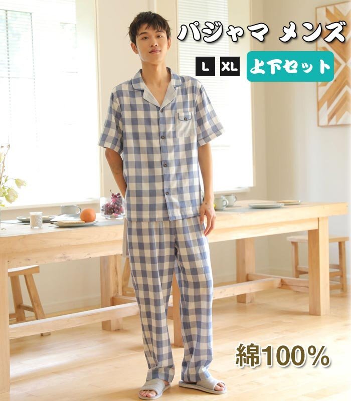 メンズ パジャマ 長袖 綿100% 前開き メンズ ルームウェア 部屋着 上下 セット コットン 吸汗通気 肌にやすい 着心地良い☆L~XL選択/1点