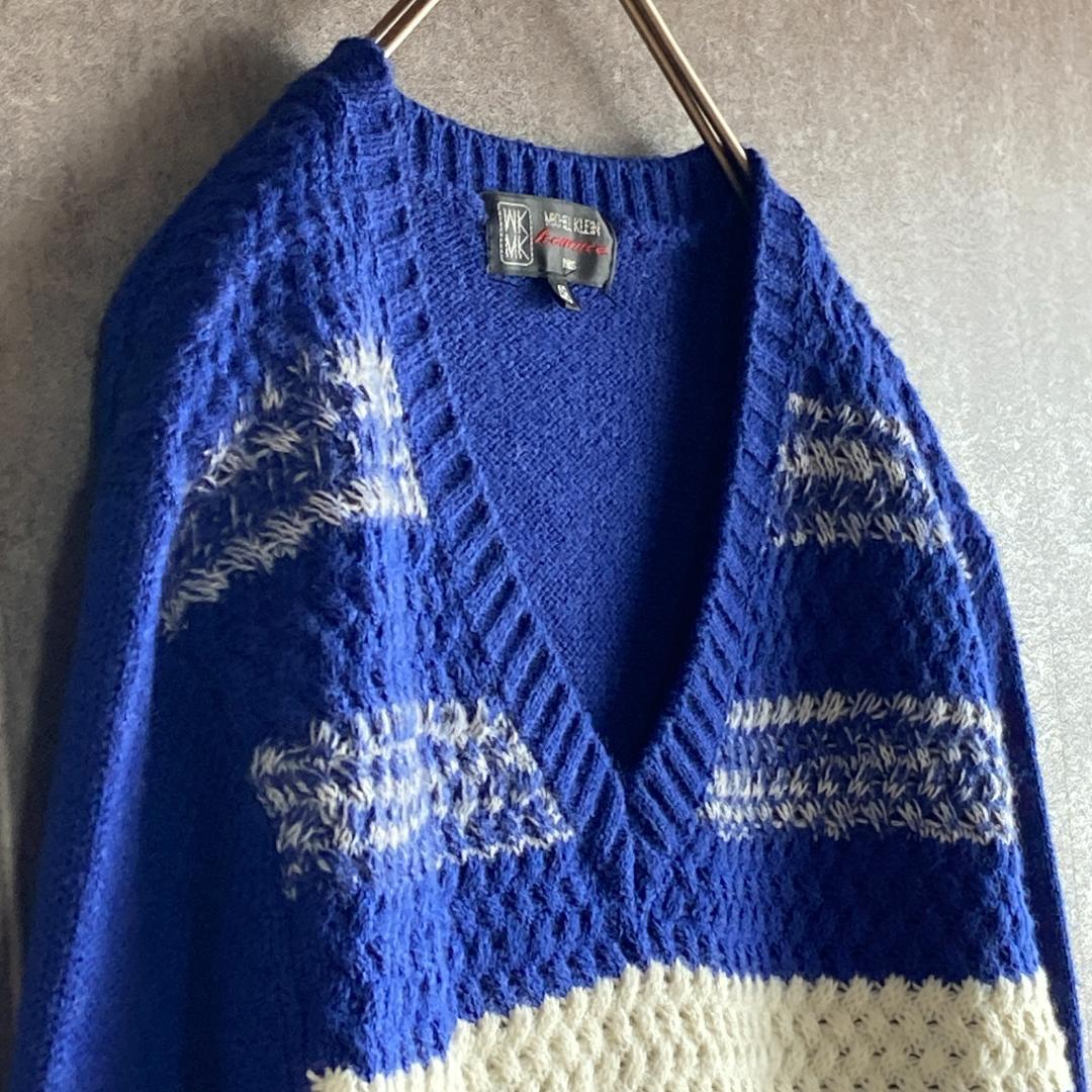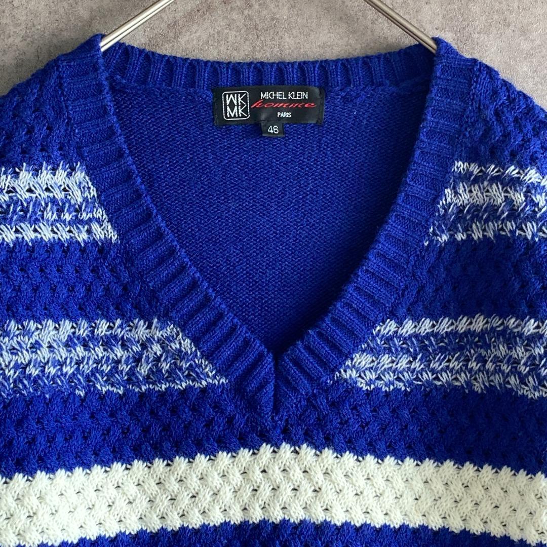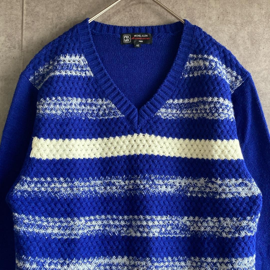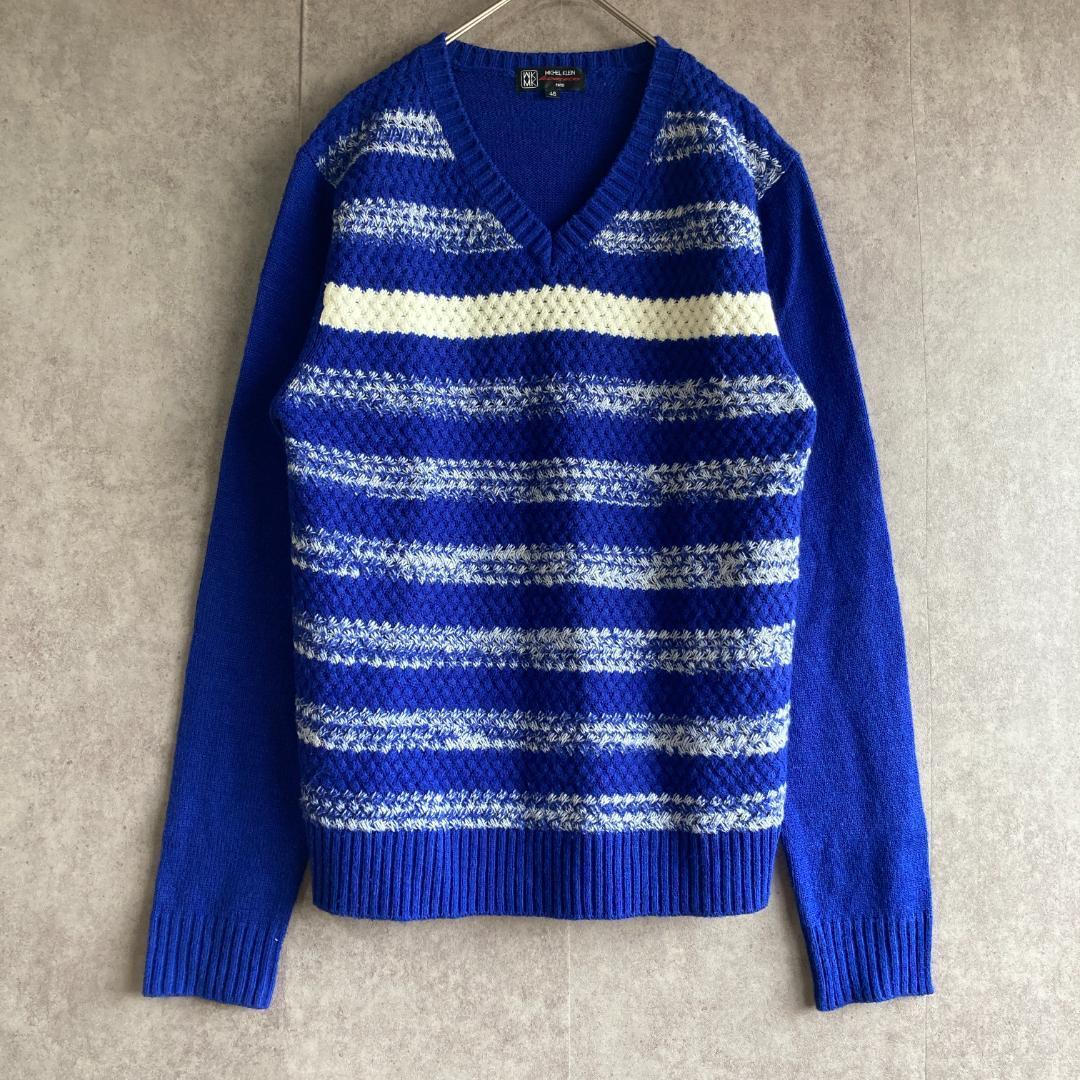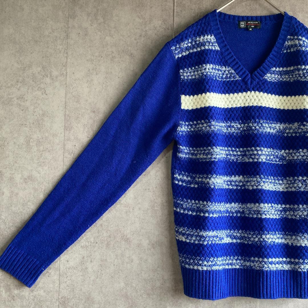 ミッシェルクラン(46)ボーダーニット*セーター*長袖*Vネック*メンズ*ブルー