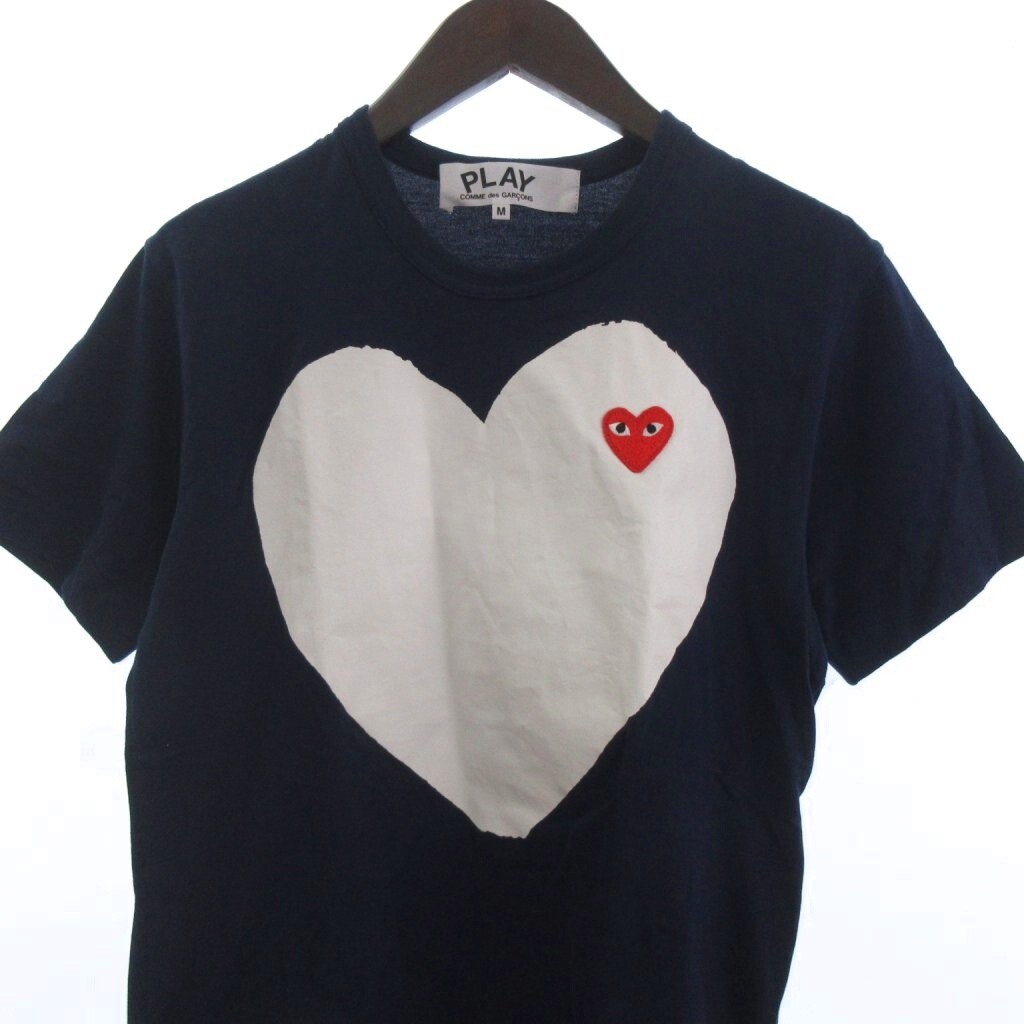 プレイコムデギャルソン 美品 Tシャツ カットソー 半袖 COTTON JERESY PRINT RED EMBLEM AZ-T184 ワッペン プリント 紺 M メンズ