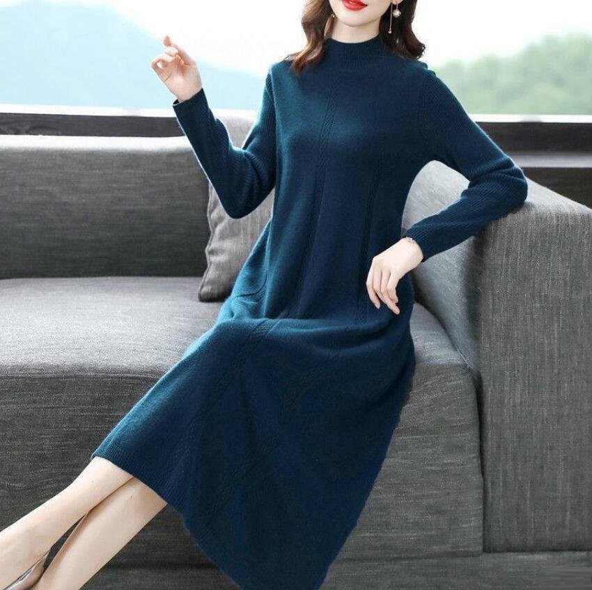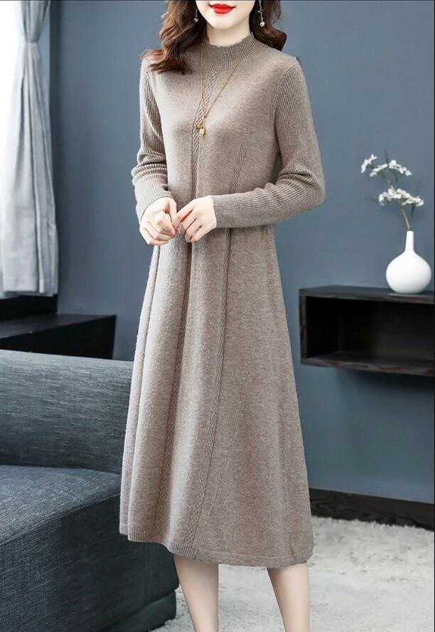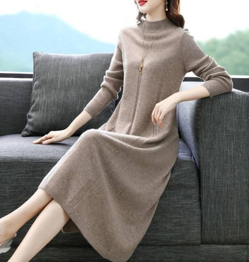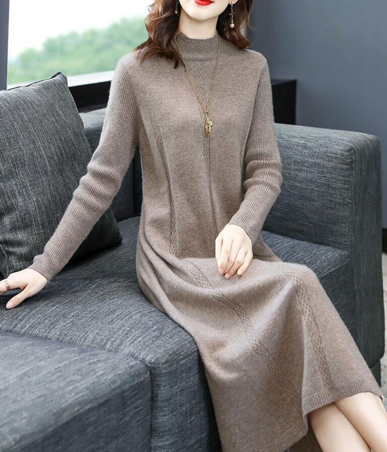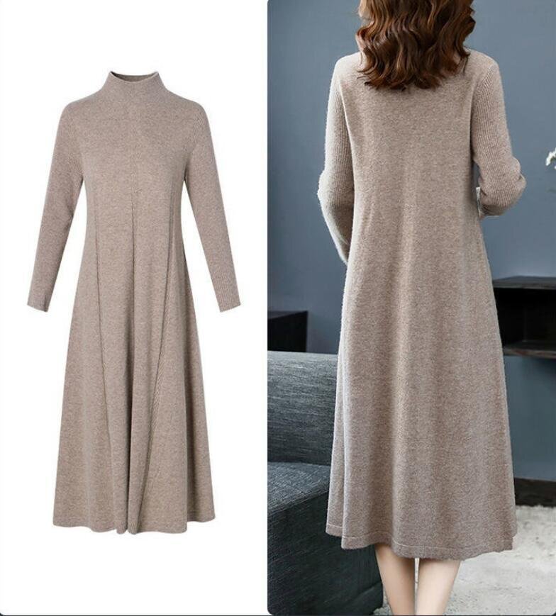 ニットセーター ロング丈ワンピース 上品 上質 大人女子 ゴージャス カシミヤ混 暖かい ■キャメル