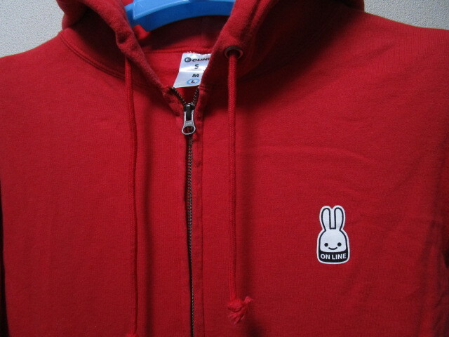 CUNE ウサギ ジップアップパーカー・L・赤/レッド(キューンうさぎ兎フーディージャケット)