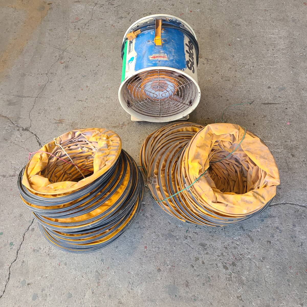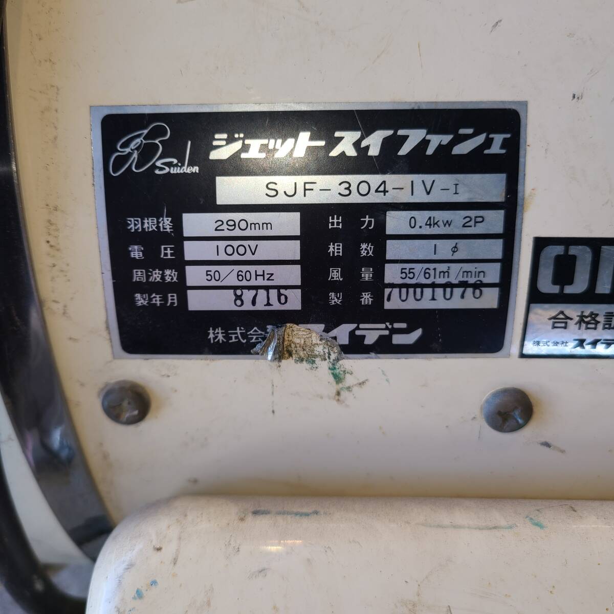 ご覧を頂き有難う御座います、スイデンのジェットスイファンSJF-304-1V-1です、100v風量55/61 min羽根径290ミリ出力0.4kw作動品ダクト2本付属