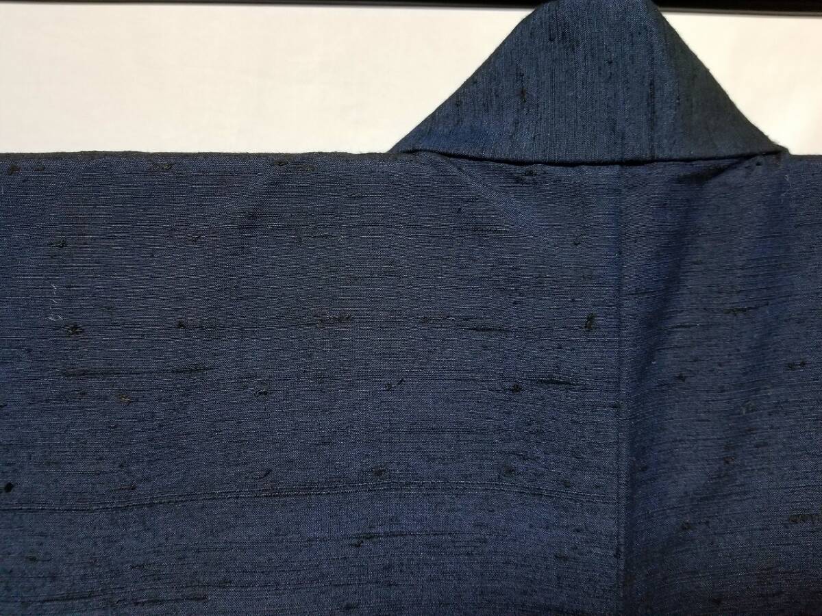*手縫仕立て品 *着用感 .シミ.汚れなく状態は良いです *L寸 {生地} ☆正絹 西陣織 手織.髭織紬 {ほっこりと暖かみのある生地です} ☆着物重さ 約 910g {地色と文様} ☆「藍鉄色地*ごく暗い紫みの青色」地に「黒糸」での髭織 {胴裏地} ☆正絹 絹金巾地{紫み青色}**美品 {袖口布} ☆正絹 袖口布地{黒色} ◎消費税は.お預かりしておりません◎ {着物寸法}**L寸 着丈 {肩から裾まで} 約145cm 裄丈 約70.5cm {袖付け縫い代 袖側 約2cm 身側 約0.5cm} 袖丈 約49cm 袖幅 約35cm 前幅 約27cm 後幅 約32.5cm {和紙タトウ紙付き} {適応身長*目安}**L寸 *170cm~175cmのお方対応 (発送方法) ●大阪から ゆうぱっく発送 {補償あり}**おてがる配送 ◎t6227jp 桐輪 「呉服の桐正」でも色々と出品しております {注意事項} (注意事項 必ずお読みください!) ★基本的に土、日、祝日、ゴールデンウィーク、お盆、年末年始はお休みさせて頂いておりますので、ご連絡が遅れる場合もございますので、ご了承ください。 ★どうぞ自己紹介欄も、是非御覧になって下さいませ。 落札後にヤフーから届くメールに、メッセージを記載しておりますので、 そちらも必ずご覧下さいませ。 ●当方、ストア出品ではなく、一日中パソコンに向かっておらず、ご連絡は夜になる事が多いです。 その点御理解の上、ご入札下さい。 ●お急ぎの場合など、到着希望の日にちが特に近い場合、ご要望にお答えできかねる場合もございます。もちろん、出来る限り、早急に対応はさせて頂きますが、 その点は、何卒ご了承下さいませ。 入札前に、発送が間に合うかご質問頂けるとありがたいです ★★基本的に返品、クレームはお受け致しておりませんが、万が一、商品に不都合(大幅な寸法間違い 記載以外の着用不可能な位の、大きなシミ、傷みなどの見落とし)などがございました場合、まず、取引ナビにてご連絡下さいませ。 迅速に対応させて頂きます。 ただし ●商品がお客様の元に到着後、1週間以上経過したもの。 ●お客様側で加工など、手を加えた物。 ●お色目が、思っていたものと違っていた、または、思っていた感じと違っていた。 (画像はできるだけ実物に近い色で写るように努力していますが、素人の撮影ですので、どうしてもPCによって多少違ってくる事があります。出来るだけ、分かりやすいように説明は入れさせて頂きます。分かりにくい場合、ご質問下さい。) 以上につきましては、対応出来ませんので、ご理解下さい。 ★複数商品の落札予定のある場合、ご連絡頂きましたら、1週間程でしたら、お取り置させて頂きます。 お気軽に、お申し出下さいませ。 ★送料は、1個で発送が無理な場合は、こちらよりご連絡させて頂きます。 | |||