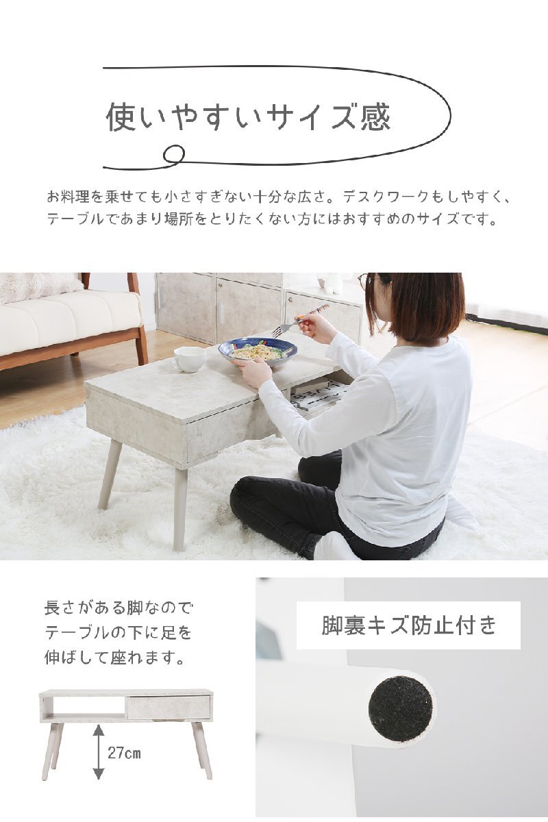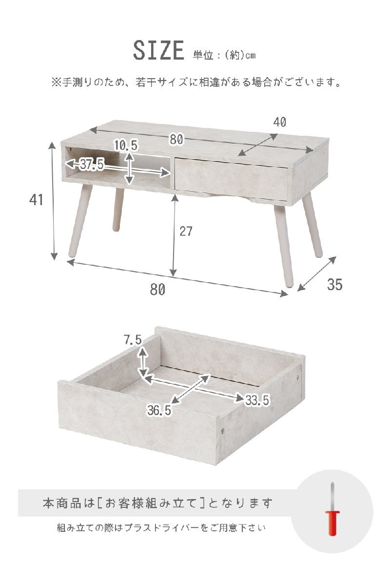 センターテーブル テーブル リビングテーブル ローデスク 幅80 お洒落 おしゃれ 韓国風 木製 引き出し 収納 シンプル モルタルベージュ