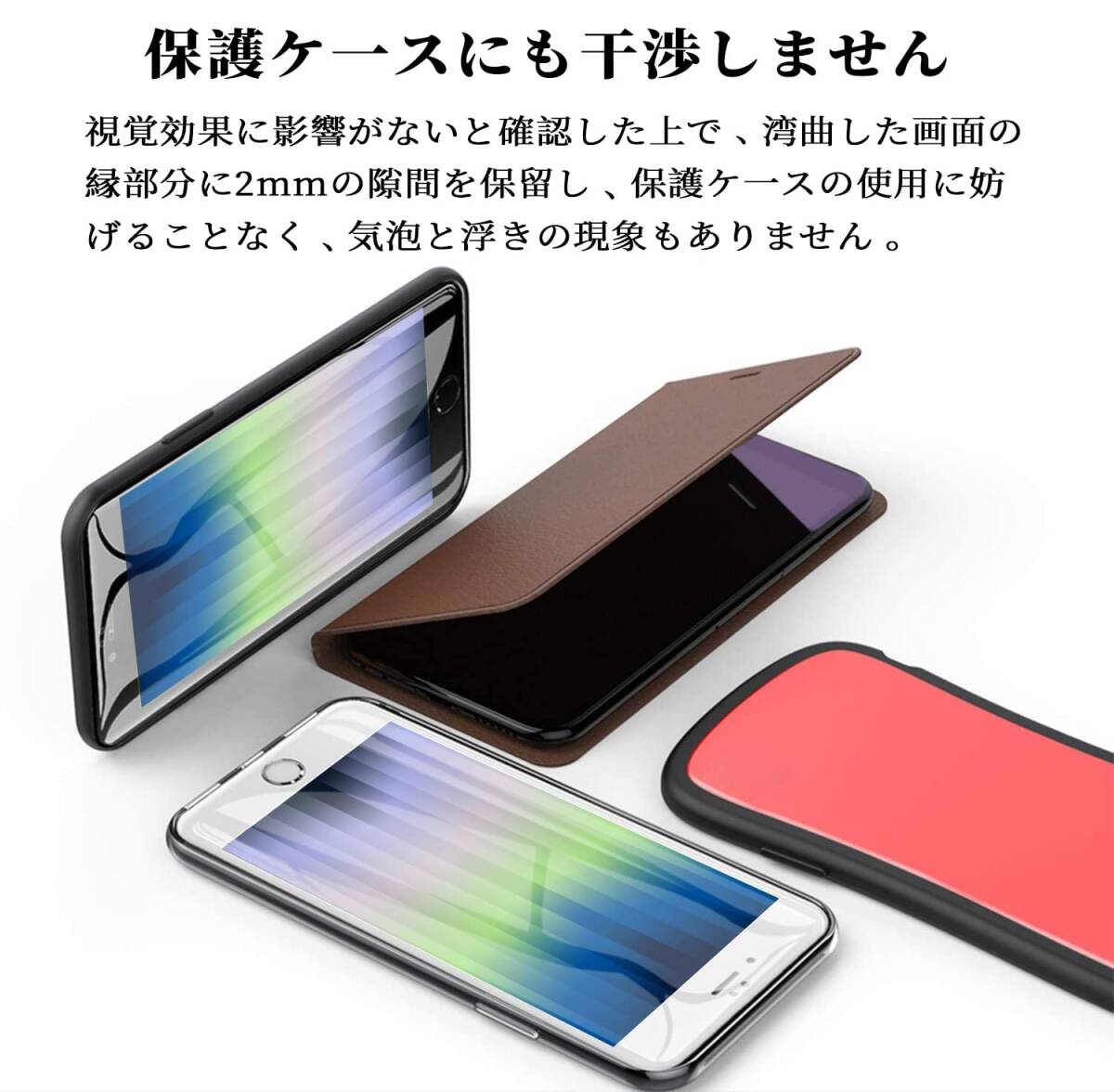『対応機種』 iPhone SE2 / iPhone SE3 用 携帯は端部のカーブがフィルム剥がれ、浮きの防止、スマホケース装着スペース確保のため、機器の曲面の縁にスペースを残すデザインとなっています。