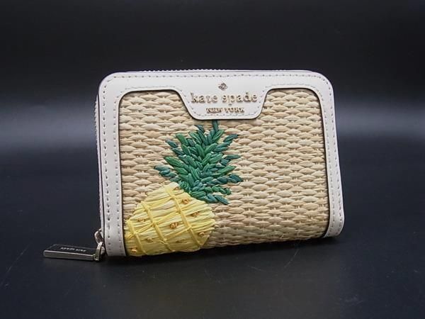 ■美品■ kate spade ケイトスペード K7191 ストロー×レザー パイナップル コインケース コインパース 小銭入れ ベージュ系 DJ5116