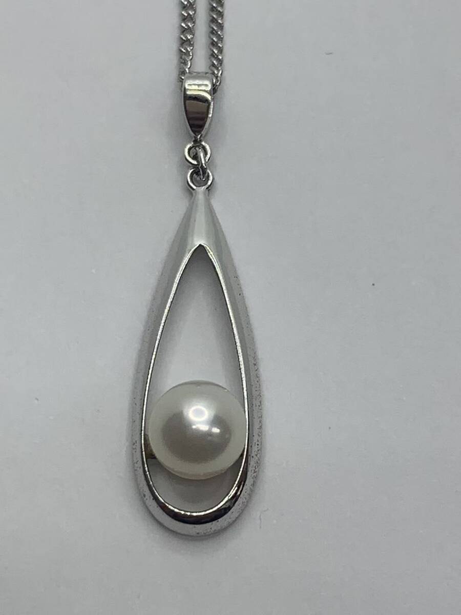 首周り約41cm、真珠直径約7mm、ペンダントのサイズ約:28x9x2mm。