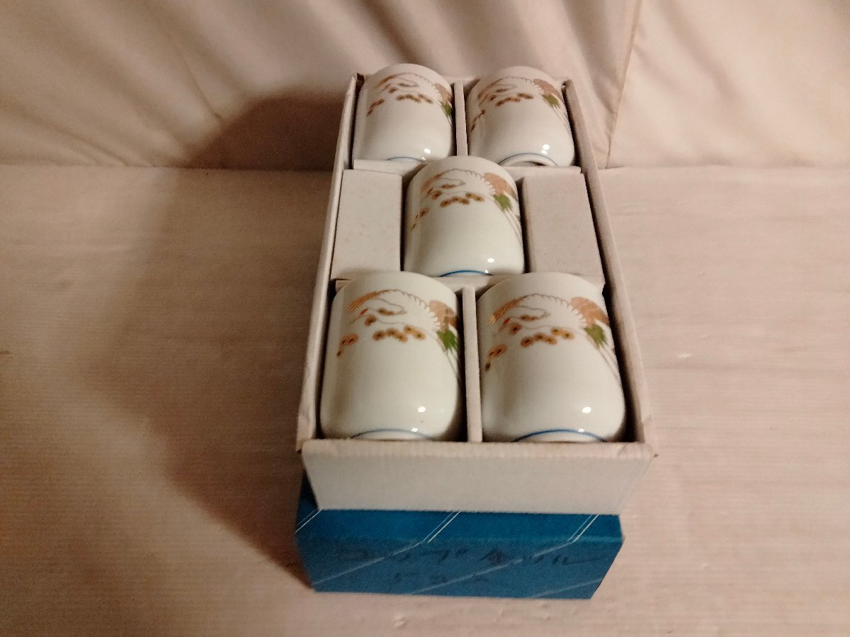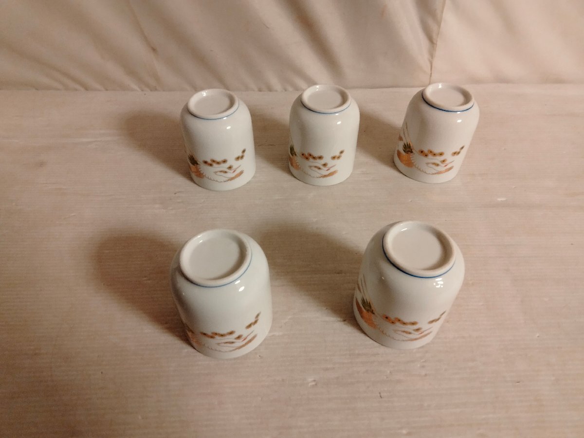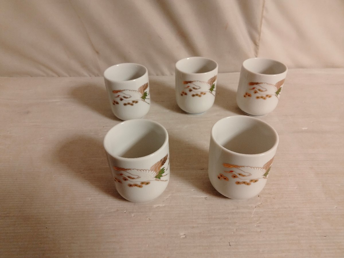 金鶴柄 湯呑5客