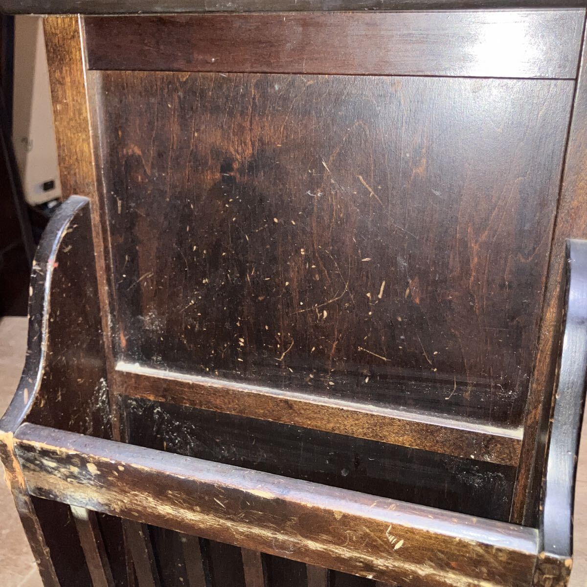松本民芸家具 マガジンラック 木製 飾り棚 レトロ アンティーク 天板キズあり 中古 62×35×61cm 中古 家財便のみ Aランク
