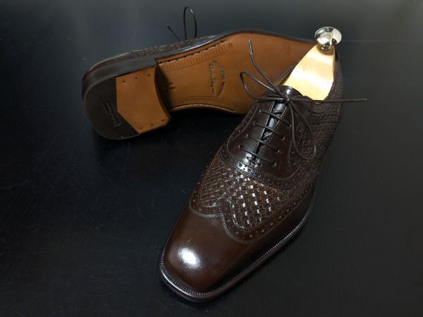 未使用 フェラガモ 6.5EE Ferragamo イントレチャート(編み込み)ドレスシューズ 濃茶 846