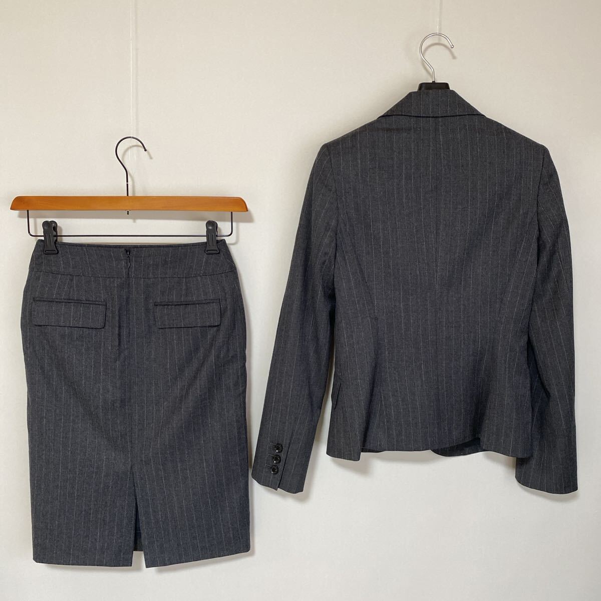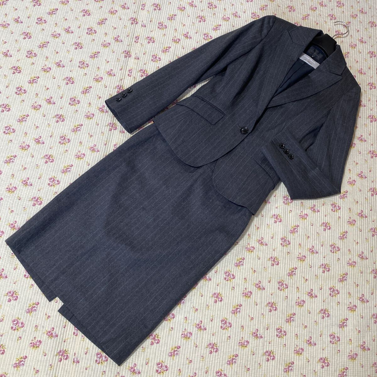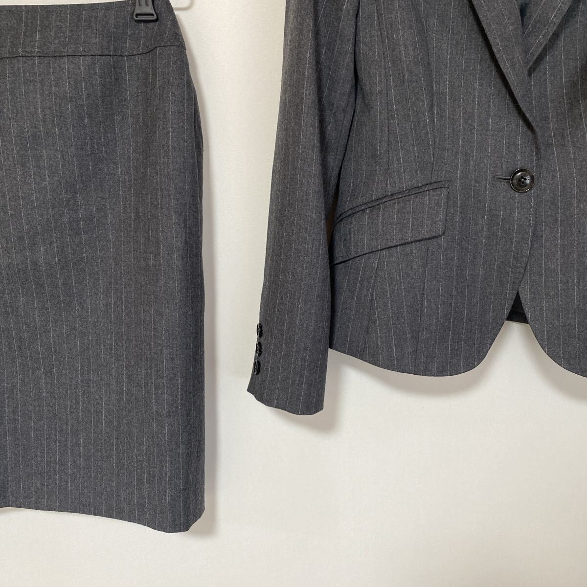 【極美】ルスーク スカートスーツ 36 W62 OL グレー ストライプ 秋冬 DMW