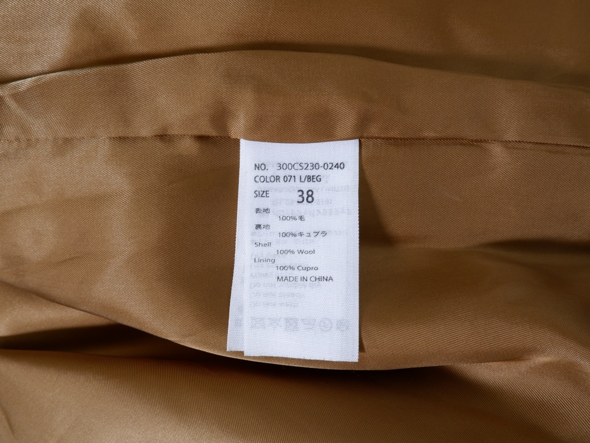 【素材感】ウールギャバ地 【透け感】なし 【裏地】あり 【ストレッチ】なし 【開閉デザイン】ボタン 【付属品(取り外し可)】なし 【商品情報】品番300CS230-0240。参考定価58000円+税。 |