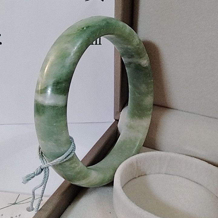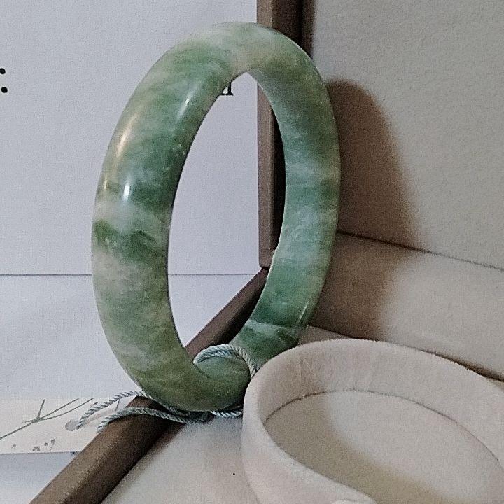 ミャンマー産 本翡翠 A貨 グリーン 緑 漂花 花柄 バングル H-0041