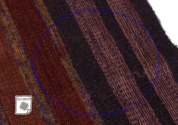 コンディション | 引っ掛け・穴あきがあります(写真参照)。その他目立ったシミ、汚れ、ほつれ等なくいい状態です。クリーニング済み。 |