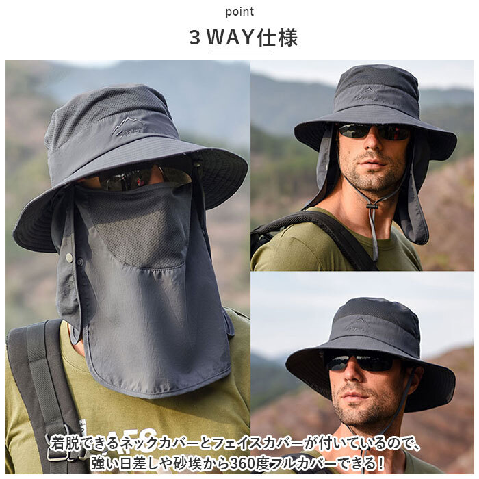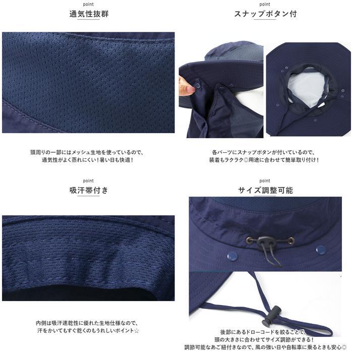 | 商品説明 | ・・3WAY仕様で使い方いろいろ♪フルカバーも出来る「日よけ帽子」が登場! ・【3WAY仕様】 ・着脱できるネックカバーとフェイスカバーが付いているので、強い日差しや砂埃から360度フルカバーできる! ・【スナップボタン付】 ・各パーツにスナップボタンが付いているので、装着もラクラク◎用途に合わせて簡単取り付け! ・【ツバ広設計】 ・強い日差しからしっかりガードしてくれるツバ広設計!日焼け対策としてオールシーズン使える! ・【通気性抜群】 ・頭周りの一部にはメッシュ生地を使っているので、通気性がよく蒸れにくい!暑い日も快適! ・【吸汗帯付き】 ・内側は吸汗速乾性に優れた生地仕様なので、汗をかいてもすぐ乾くのもうれしいポイント☆ ・【あご紐付】 ・調節可能なあご紐付きなので、風に飛ばされない!風の強い日や自転車に乗るときも安心◎ ・【サイズ調整可能】 ・後部にあるドローコードを絞ることで、頭の大きさに合わせてサイズ調節ができる! ・【折りたたみOK】 ・小さく折りたたんでカバンに収納できるので、旅行やアウトドアなどでも大活躍☆ ・【豊富なカラー】 ・カラーバリエーションが豊富なので、ユニセックスで使える!カップルや家族で色違いやお揃いで購入するのもGOOD♪ |