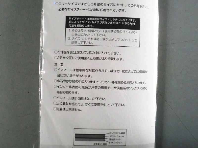 長時間立っている人におすすめのインソール! 足裏の形にフィットして、長時間立っていることが多い人の足を優しくサポートします。 1足分(2枚入り)+1足分(2枚入り) 合計4枚 男女兼用フリーサイズ インソール厚さ:約6mm フリーサイズですから、ご希望のサイズにカットしてご使用ください。 消費税・梱包料は、ありません。 宜しくお願い致します。 | |