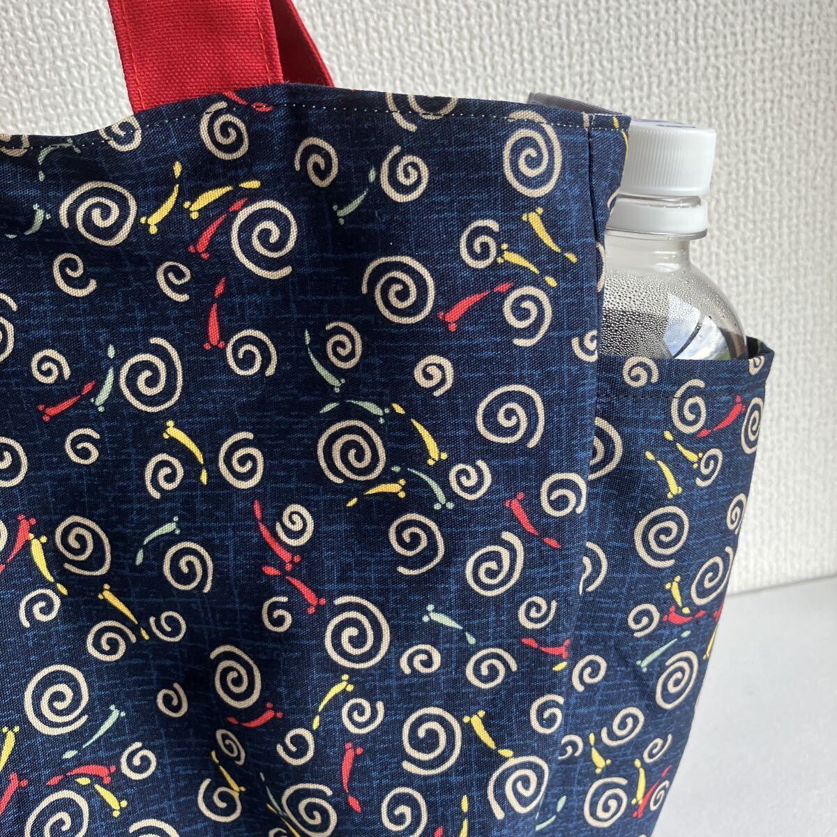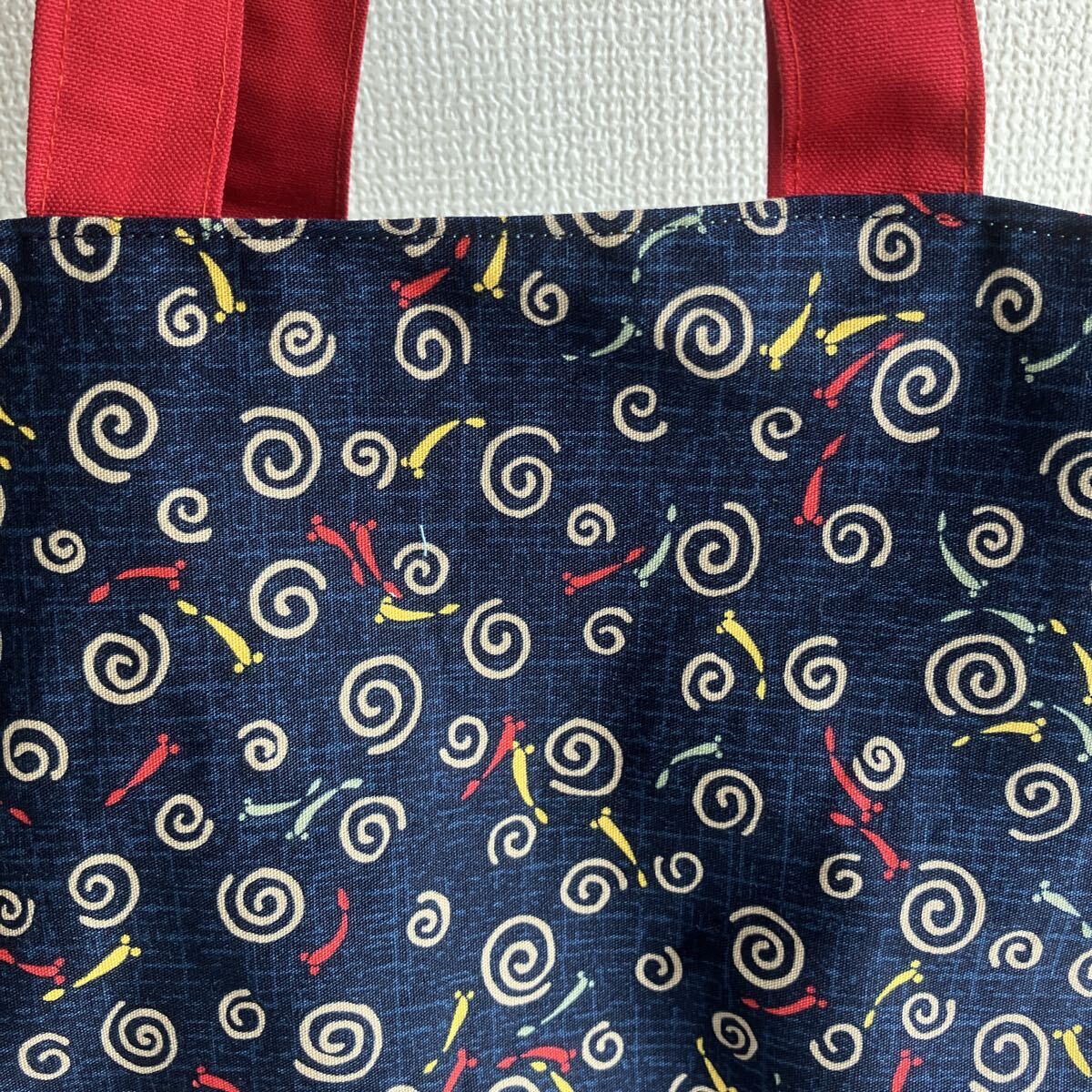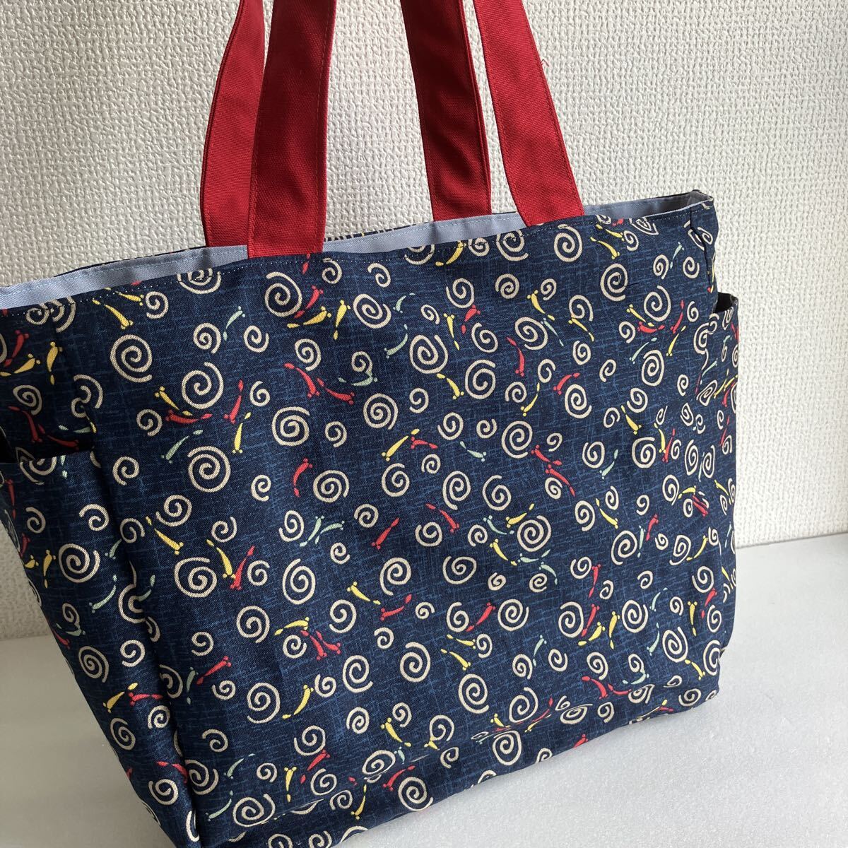 ハンドメイド 和柄 ネイビー トートバック 両サイドに外ポケット