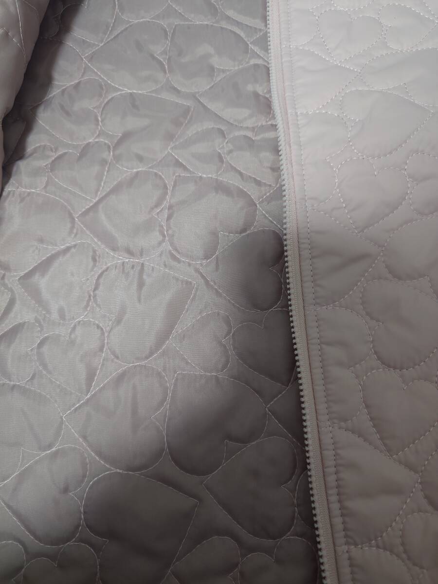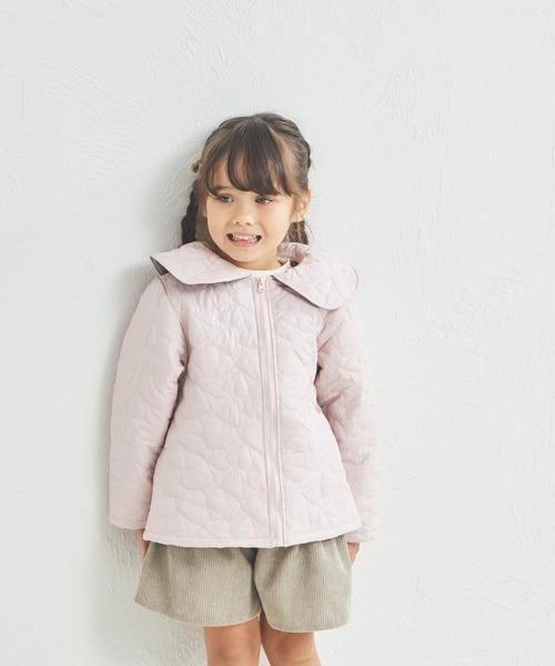 ハート柄のキルティングが可愛らしさ満点のブルゾンが今季新しく登場しました。 大きめの衿デザインがキャッチーで可愛らしさをプラス。 着脱の簡単なファスナー開きや両サイドのポケット付き仕様で、機能性もばっちりなアイテムです。