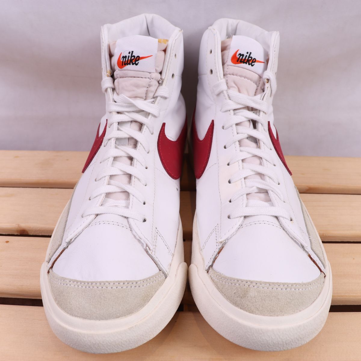 z2101 ナイキ ブレーザー ミッド 77 US10 28.0cm/白 ホワイト 赤系 グレー NIKE BLAZER MID 77 VINTAGE ブレザー メンズ スニーカー 中古