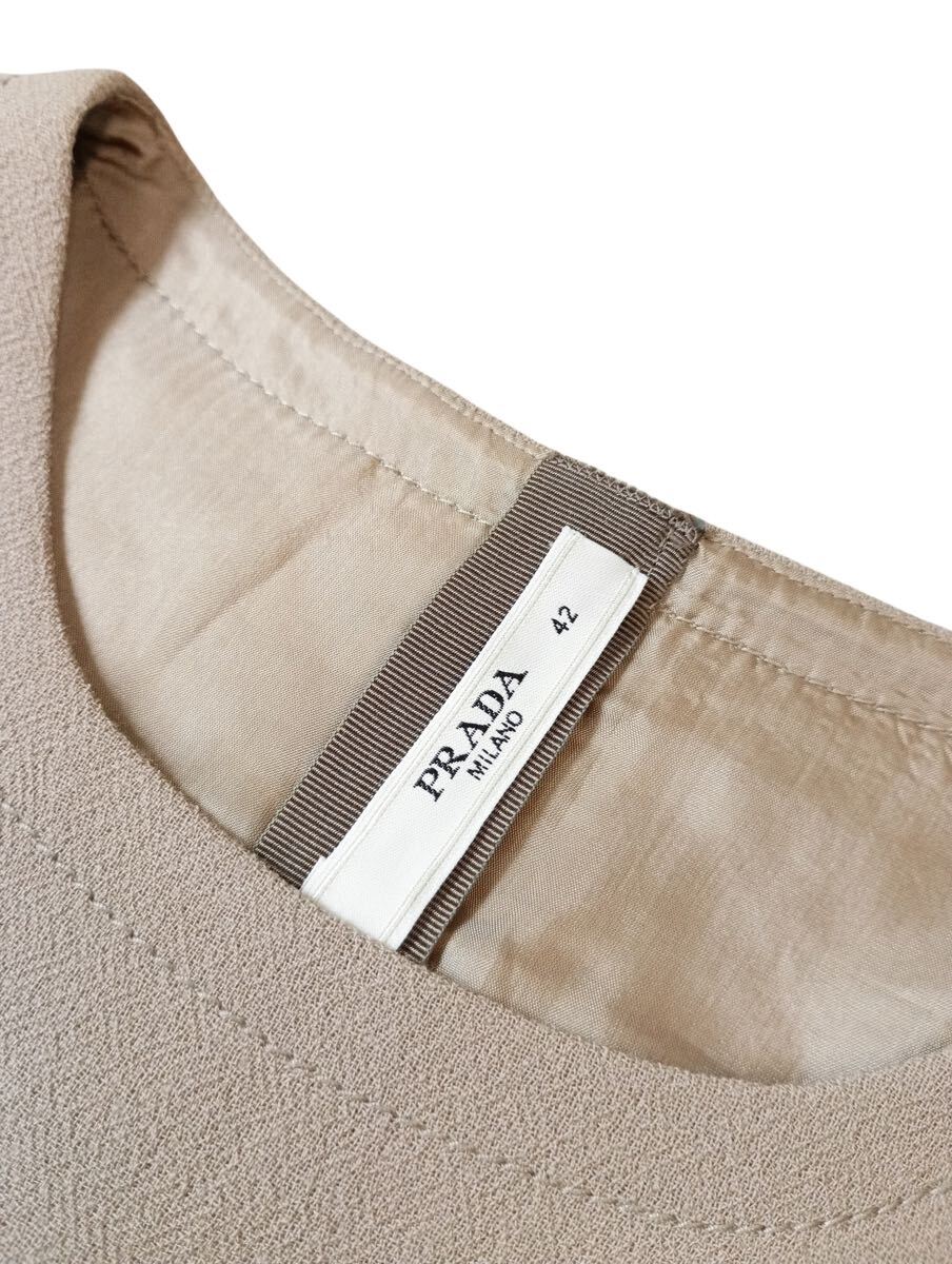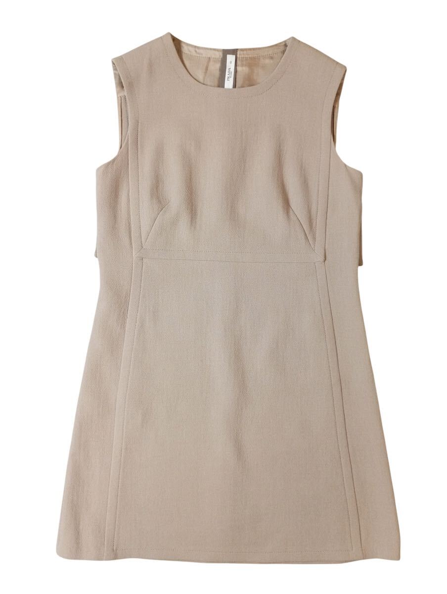 (D) PRADA プラダ イタリア製 ウール ノースリーブ ワンピース 42 ベージュ