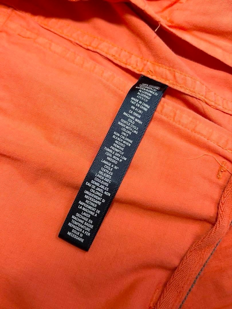 ボタン留めのマルチポケット、ウエストや裾にはドローコードが付いてます。