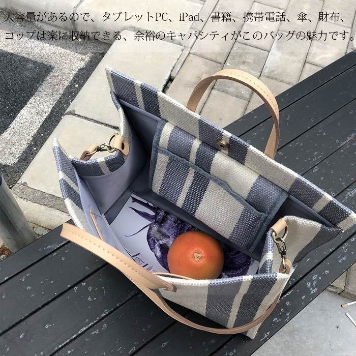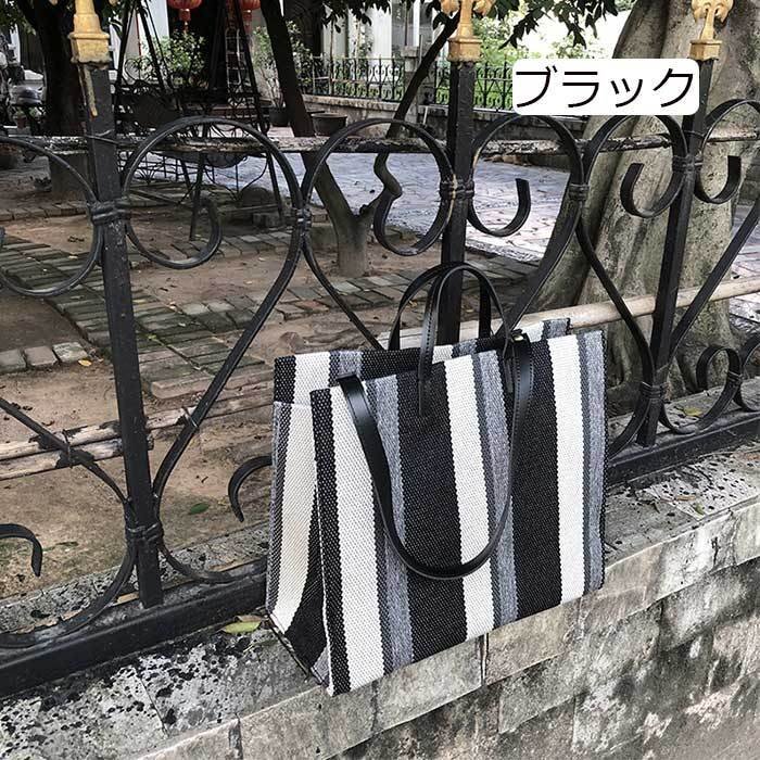 トートバッグ レディース ショルダーバッグ メンズ 2WAY 手提げ 肩掛け 男女兼用 キャンバストート しま 人気 トートバッグ ☆ブラック