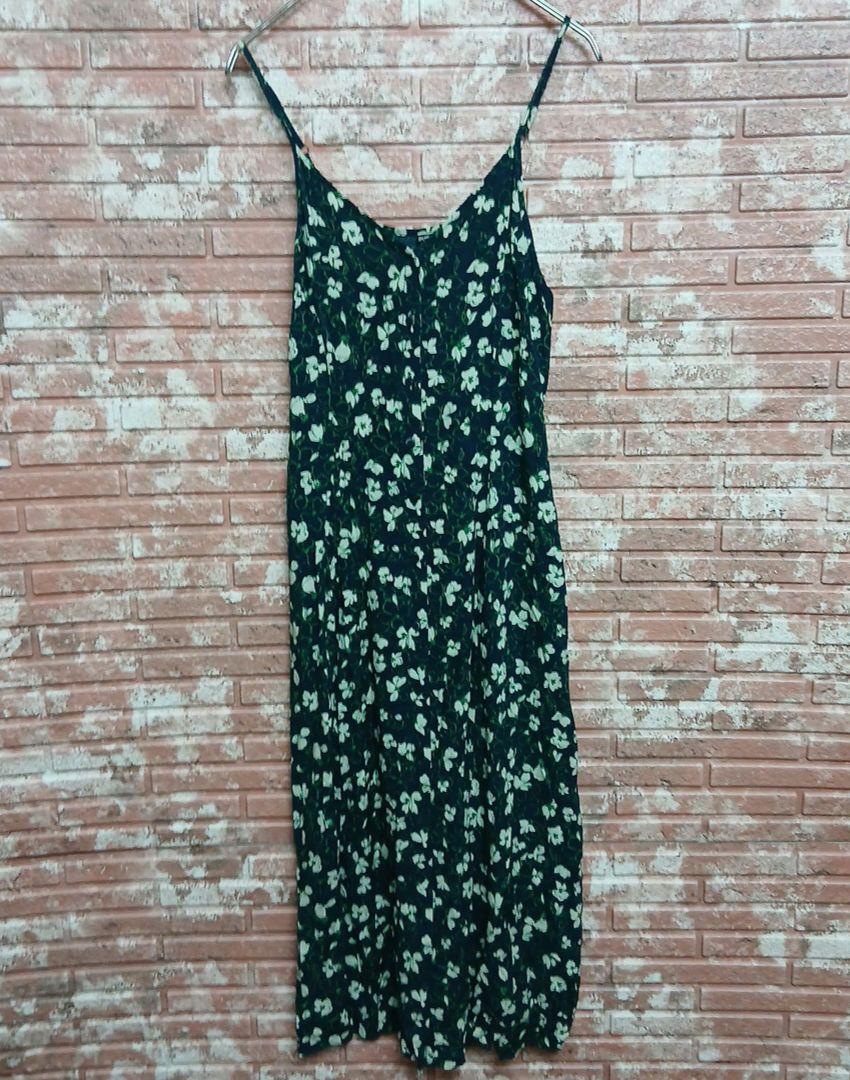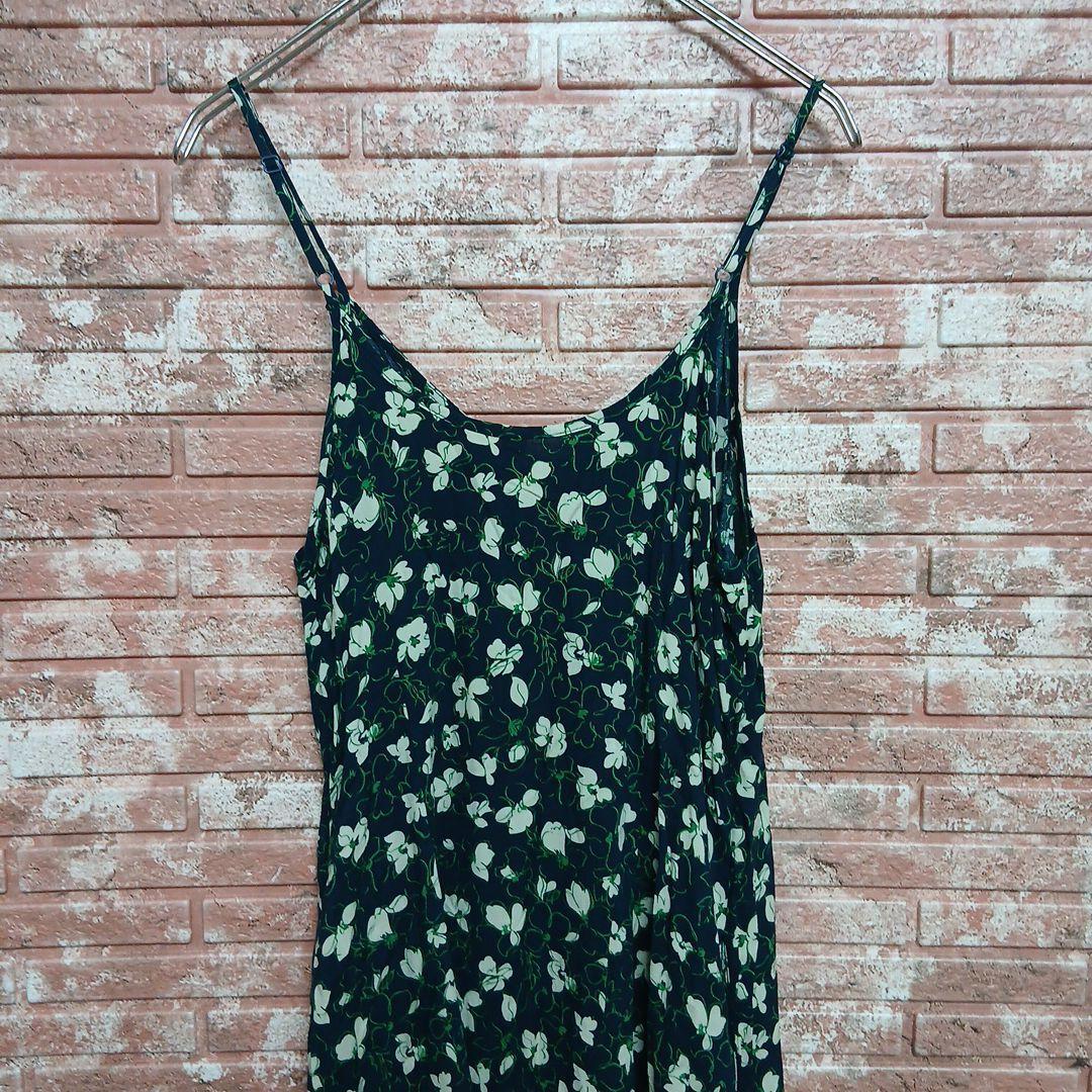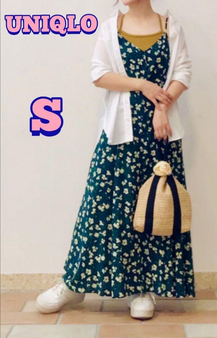 【UNIQLO】フラワープリント キャミソール フレアワンピース ネイビー S