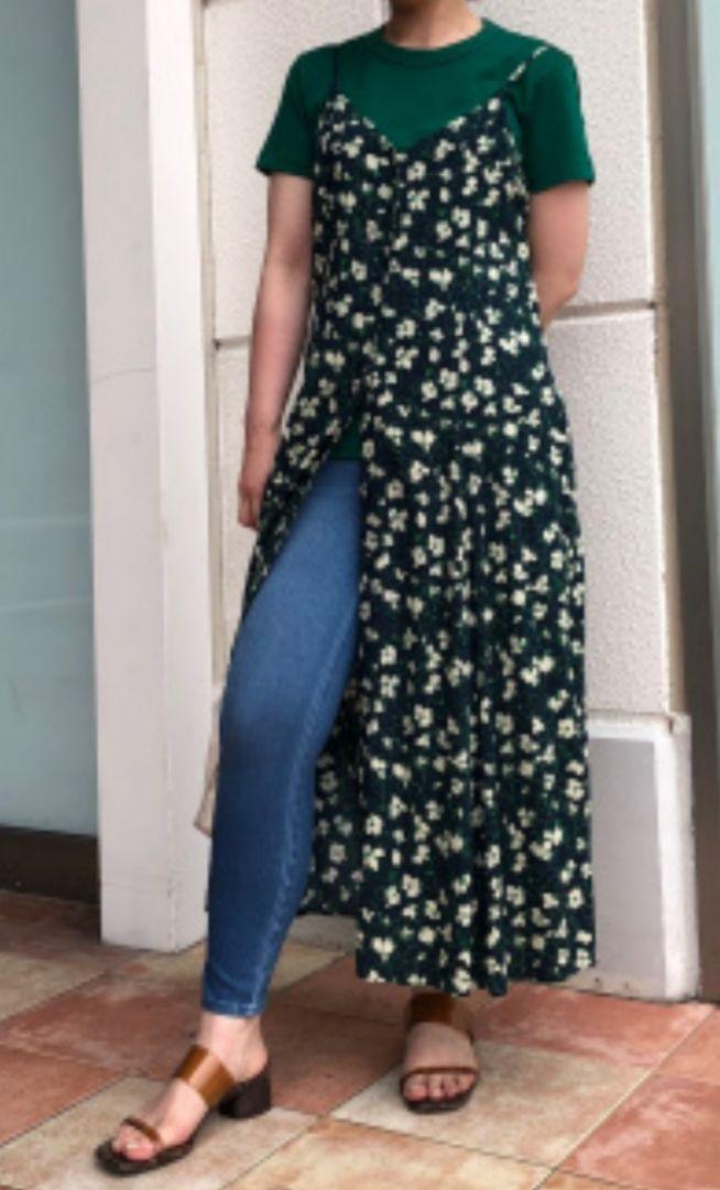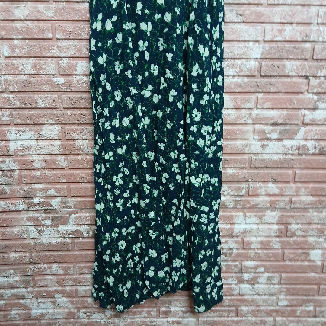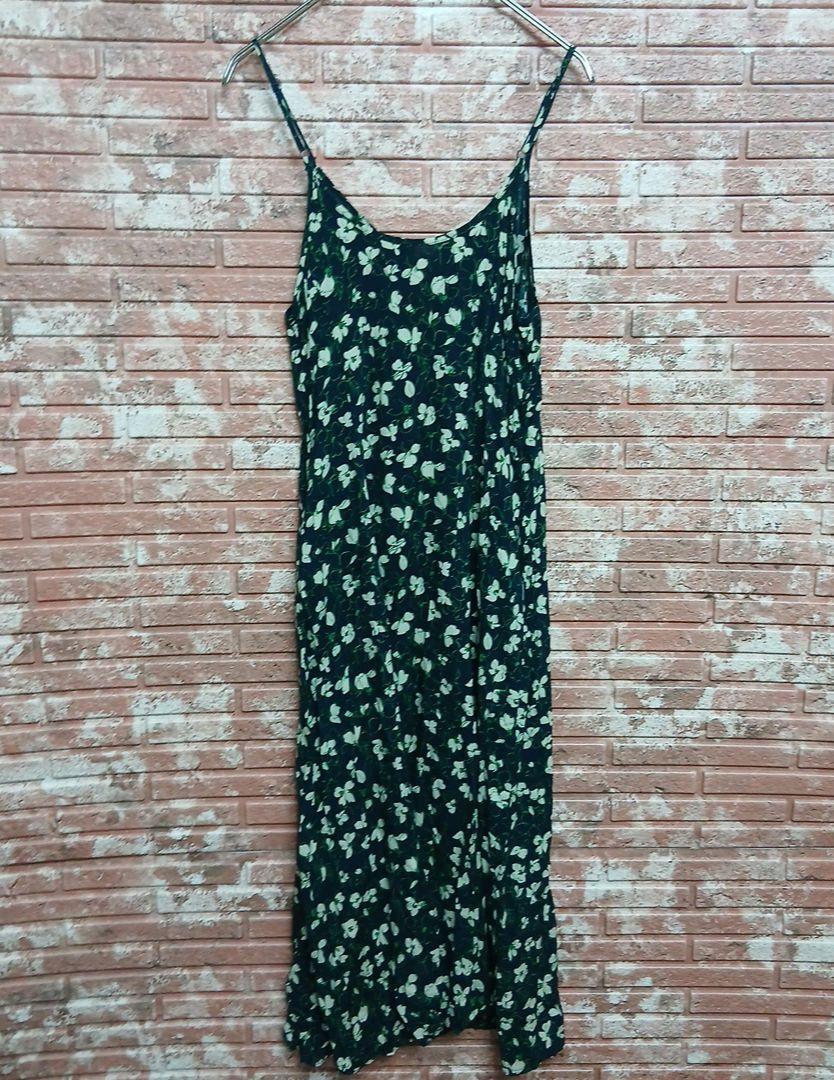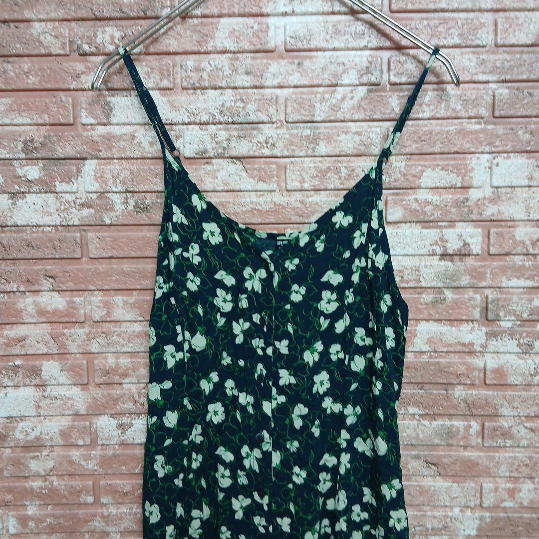 【UNIQLO】フラワープリント キャミソール フレアワンピース ネイビー S