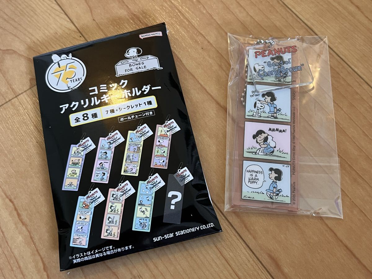ピーナッツ 75周年 コミックアクリルキーホルダーです。外袋は開封済みですが新品未使用です。