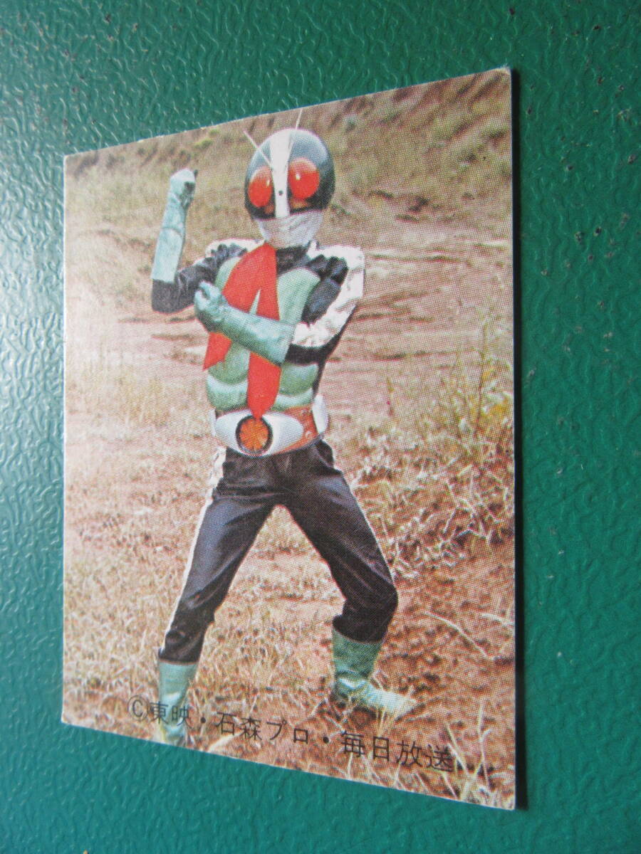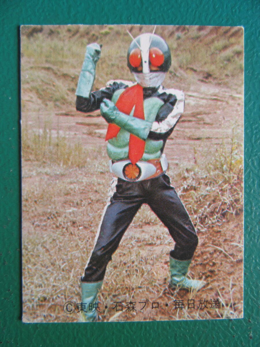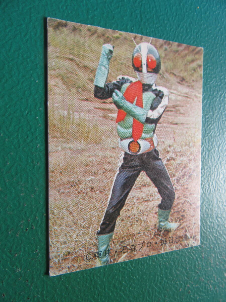 写真のカードです、今から50年以上前のカルビー仮面ライダースナックに付いていた、伝説のライダーカード、当時物、本物です。初期番号をお探しの方はコレクションにどうでしょうか。