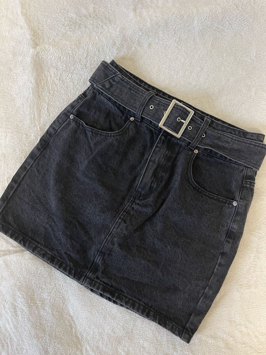 フォーエバー21 ブラックデニムタイトスカート ベルト付き