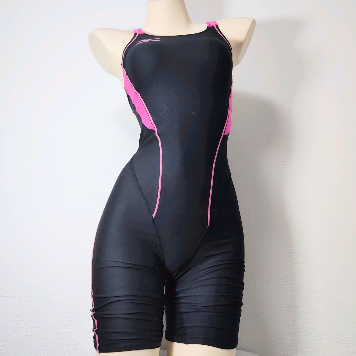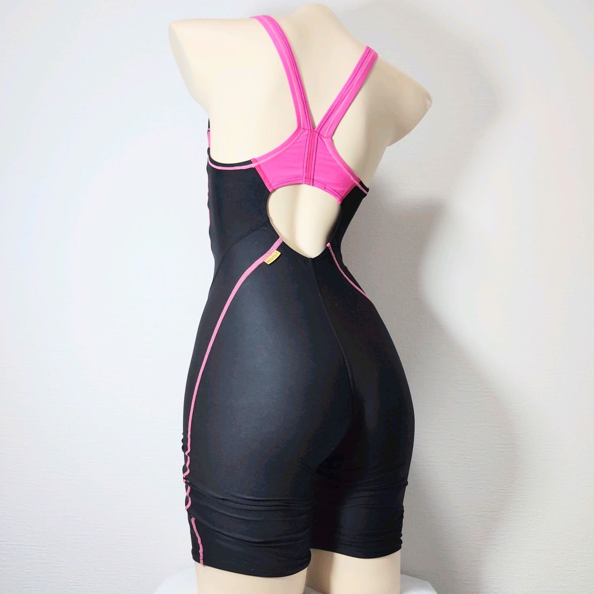 22*ミズノMIZUNO女子競泳水着(L)★N2MG7274エクサースーツ★オープンバック光沢ブラック黒ピンク★伸縮性あり大きいサイズ男性も