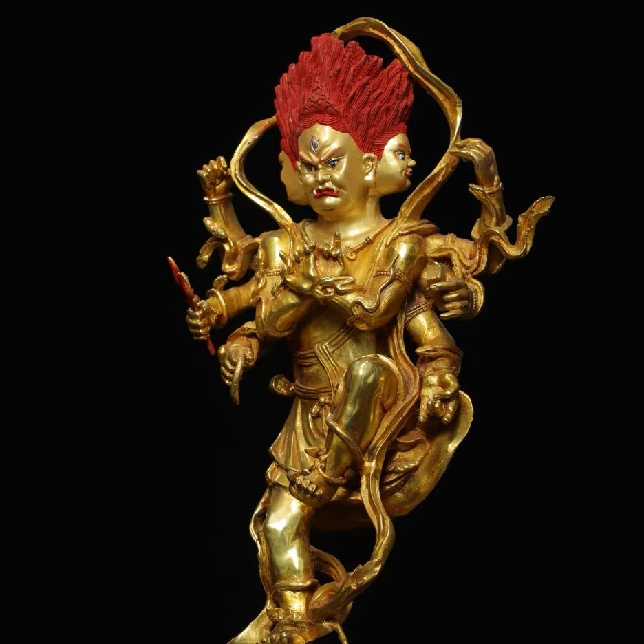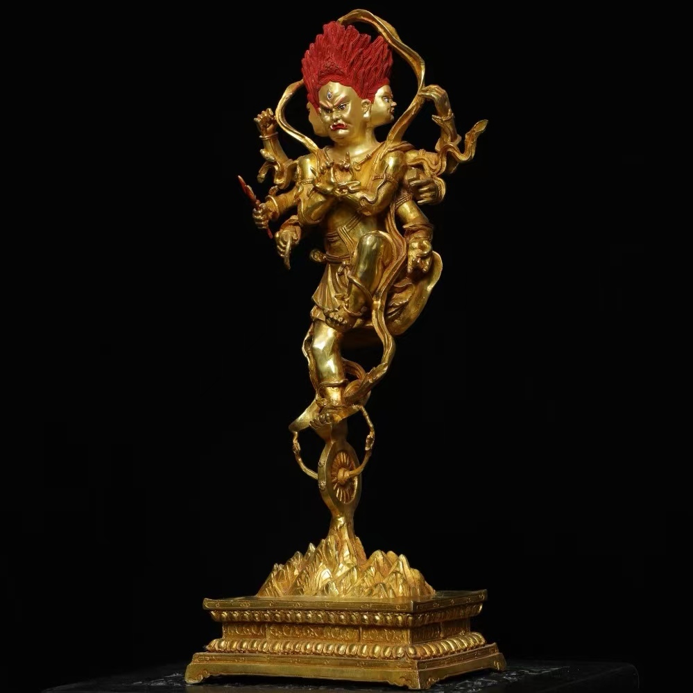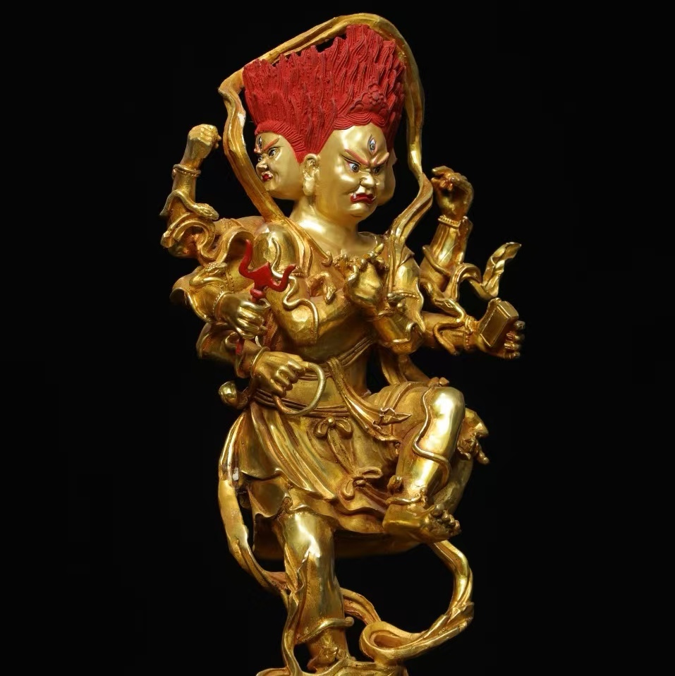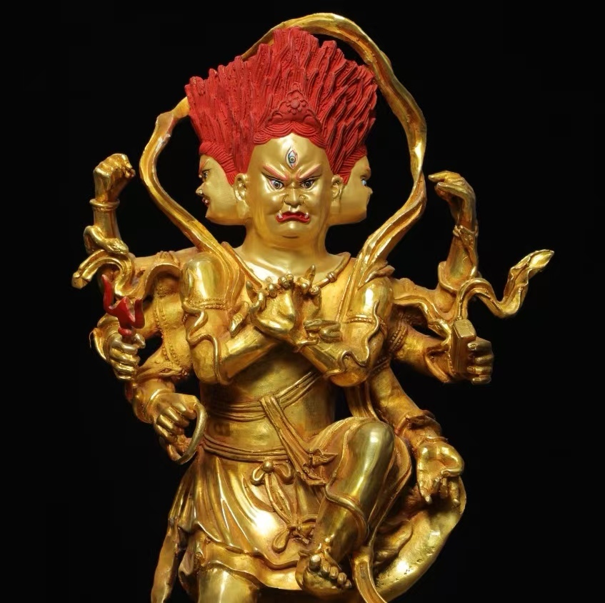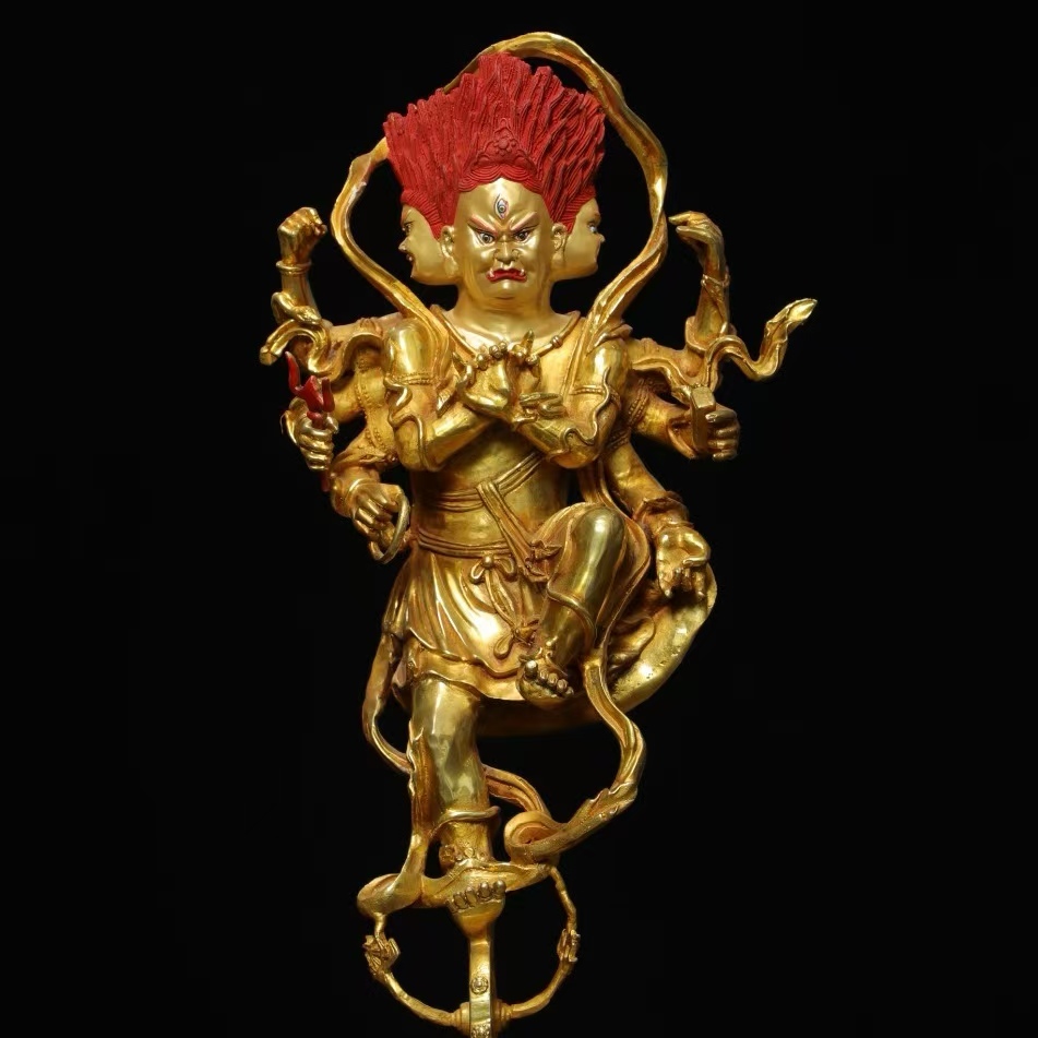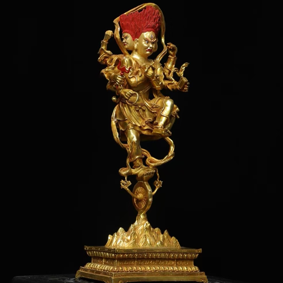 仏像 56cm秘藏 清時代 古銅金画彩【穢れ金剛】仏教古美術 廃寺旧蔵 廃寺買出品 供養品き時代物 古置物 中国古玩 骨董品 旧家蔵出し 唐物