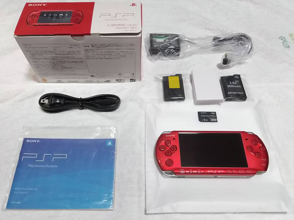 新品同様 ラディアント レッド 液晶画面は、完全に無傷、ヤケ無し ほとんど未使用に近い PSP-3000 綺麗な美品 全8点セット