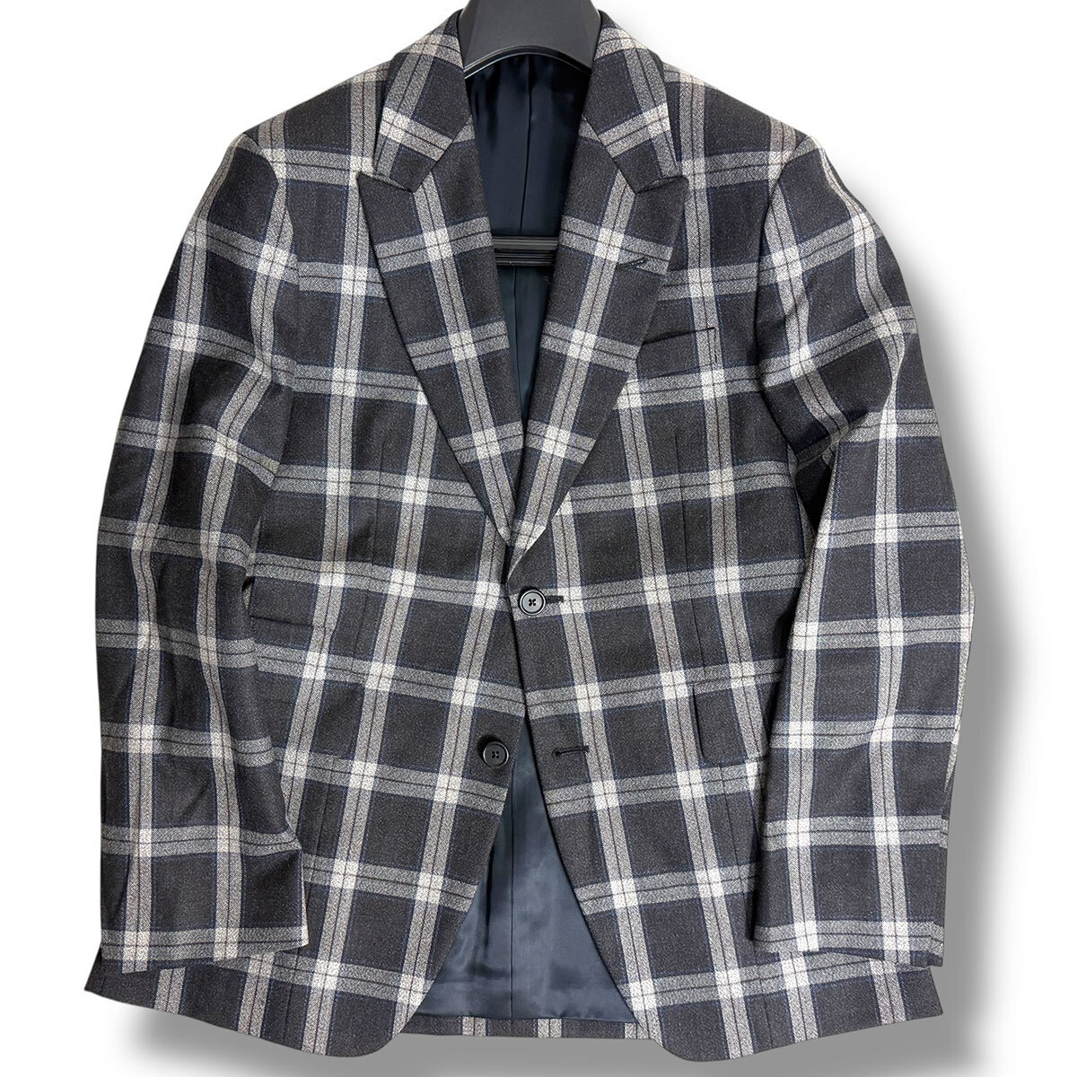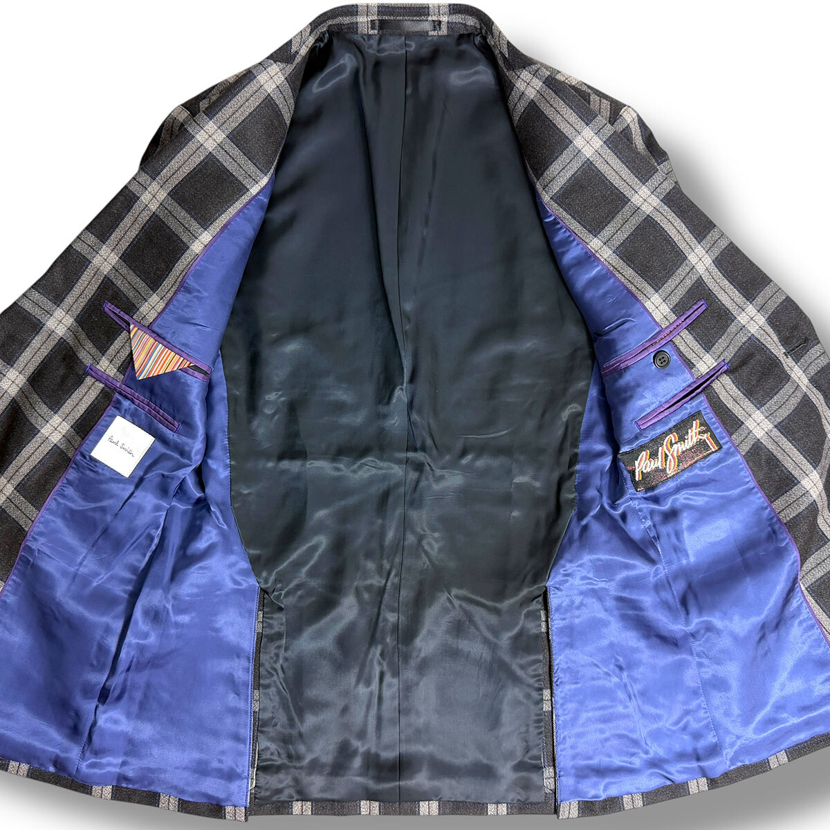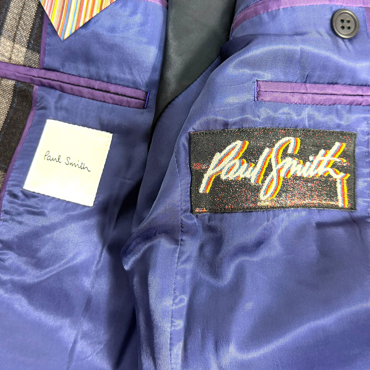 J7139 美品 ポールスミス 23AWパリコレモデル タータンチェック柄 テーラードジャケット グレーブラウン M Paul Smith