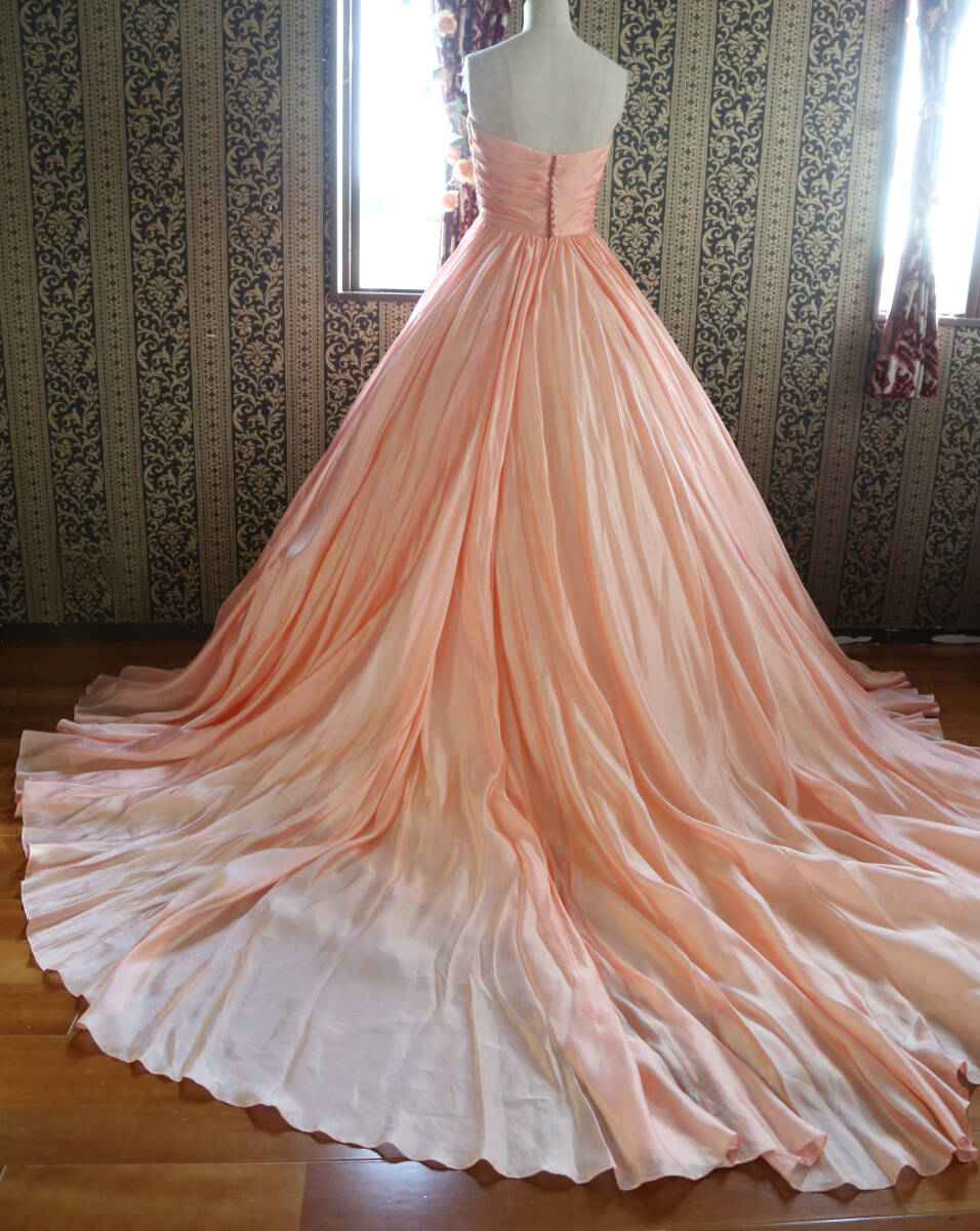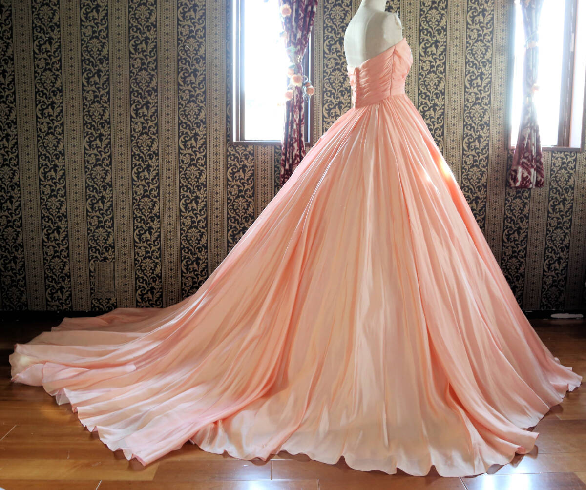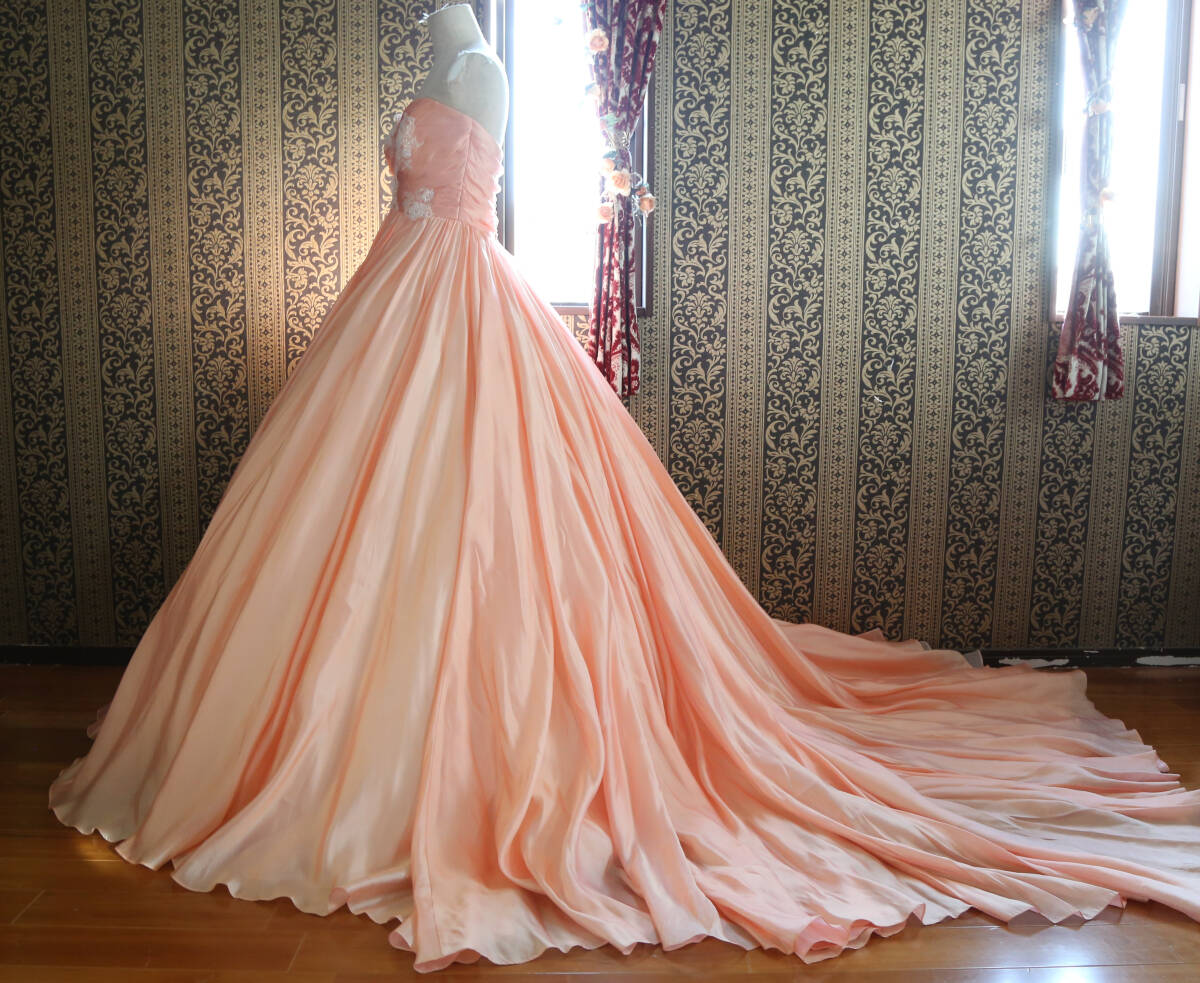 474ラトリエマリアージュL'ATELIER MARIAGE高級ウエディングドレス9号Mサイズサーモンピンクカラードレス