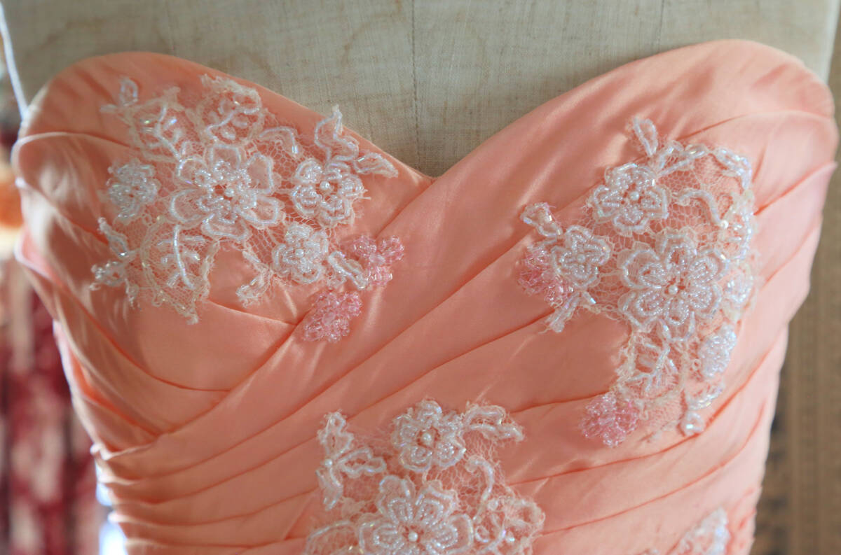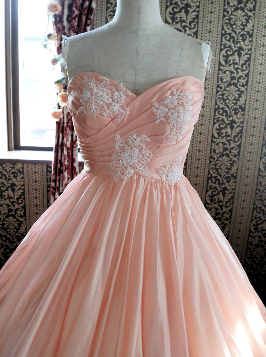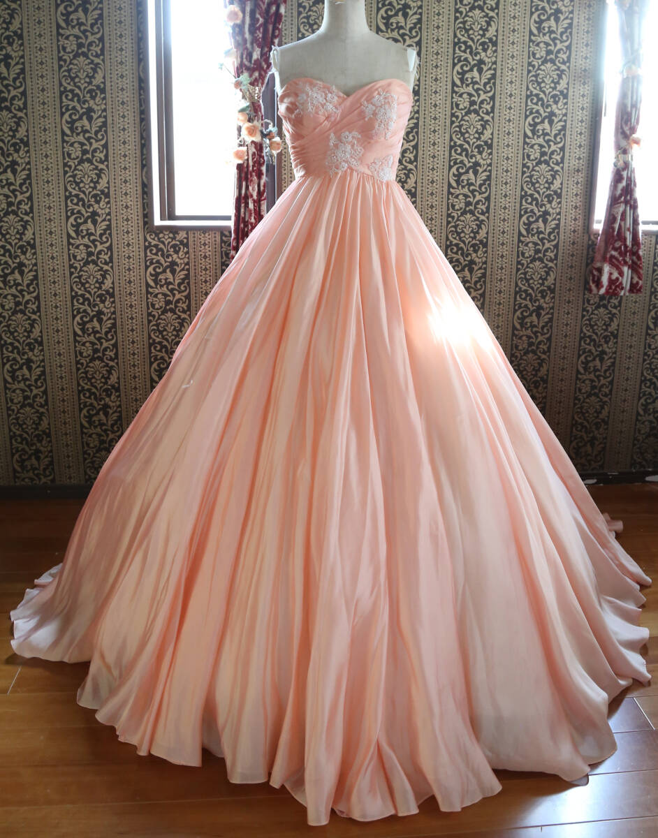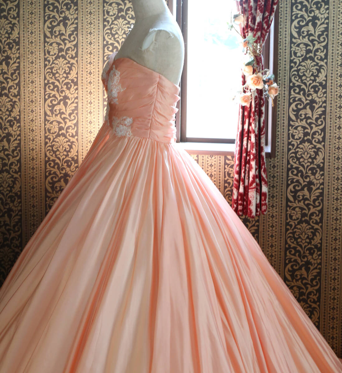 474ラトリエマリアージュL'ATELIER MARIAGE高級ウエディングドレス9号Mサイズサーモンピンクカラードレス