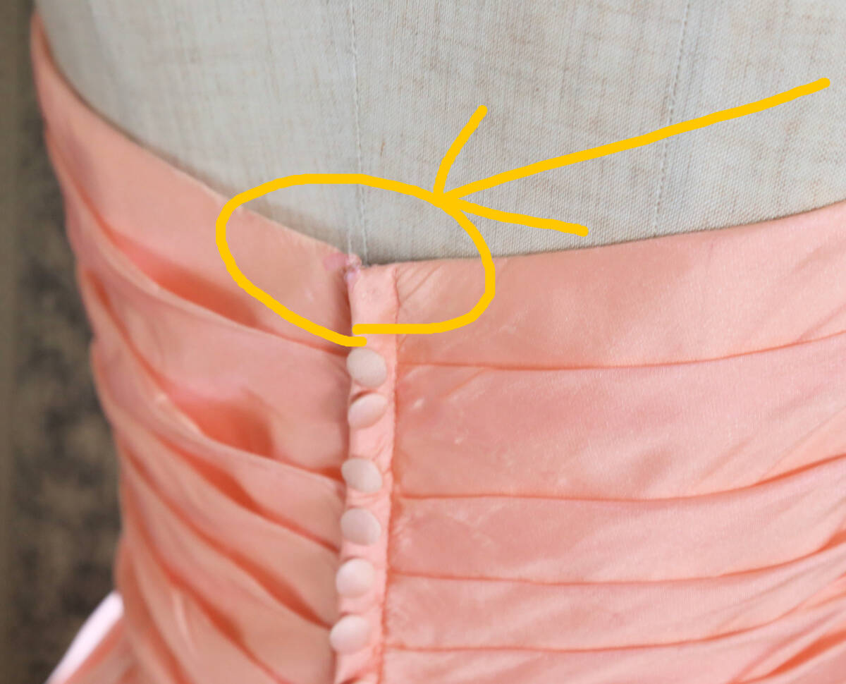 ファスナータイプのドレスは、オーバーサイズでなければ、上半身の両サイドを内側に寄せ縫いする簡単な補正でサイズ調節可能です