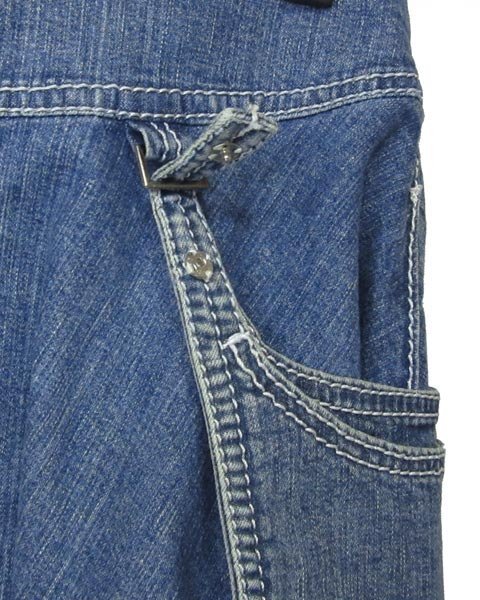フレアーのカジュアルフェミニンなデニムスカート。左サイドにはポシェットがついたデザイン。ポシェットは取り外しが可能です。カジュアルでも甘目スタイルが楽しめます。両サイドにスリットポケットあり。 |