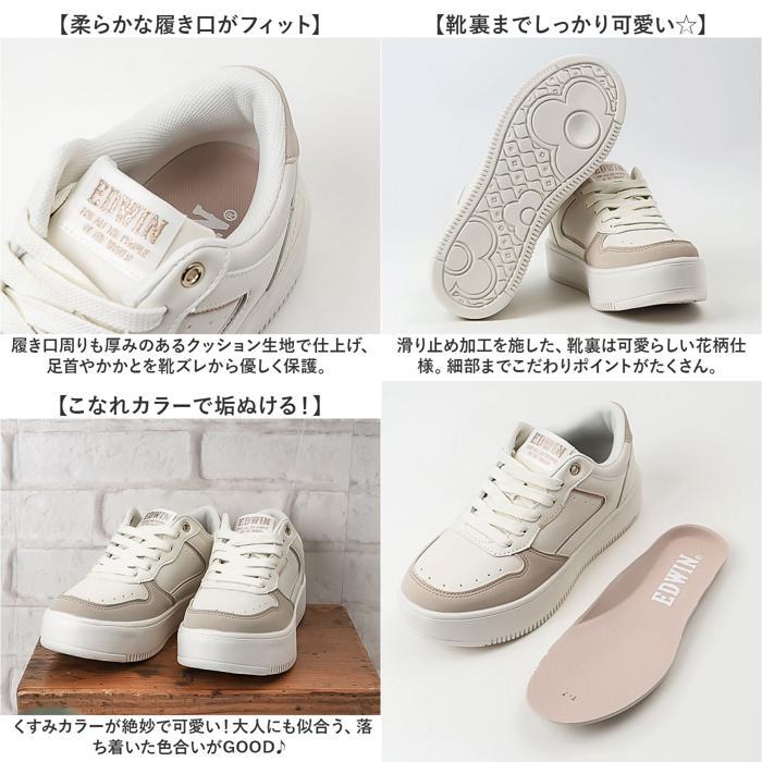 商品説明 | ・・【ふんわり軽い履き心地♪】 ・カジュアルだけどちゃんと可愛い☆「EDWIN 軽量 スニーカー」が新登場! ・【ストレスフリーの軽さを実現】 ・たくさん歩いても疲れにくい、軽量ソールを採用。履いた時に驚く、見た目より軽い履き心地。 ・【可愛らしいトレンドフォルム】 ・少し厚底で丸っこいフォルムは女子にぴったり!スカートコーデにマッチするキュートさ。 ・【キラッと輝くブランドロゴ】 ・ラメ仕様の「EDWIN」のロゴが優しいアクセント♪華やかさのあるおしゃれな足元に。 ・【柔らかな履き口がフィット】 ・履き口周りも厚みのあるクッション生地で仕上げ、足首やかかとを靴ズレから優しく保護。 ・【靴裏までしっかり可愛い☆】 ・滑り止め加工を施した、靴裏は可愛らしい花柄仕様。細部までこだわりポイントがたくさん。 ・【こなれカラーで垢ぬける!】 ・くすみカラーが絶妙で可愛い!大人にも似合う、落ち着いた色合いがGOOD♪ |