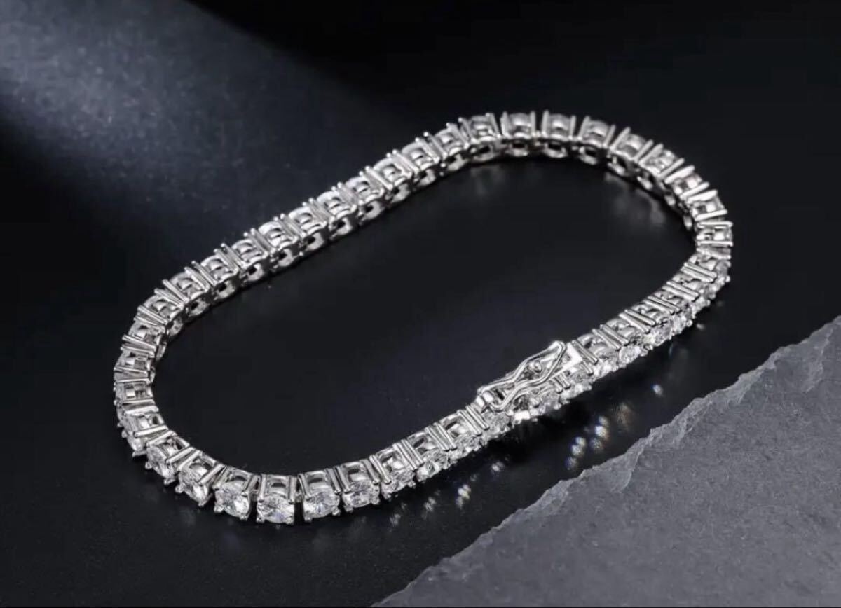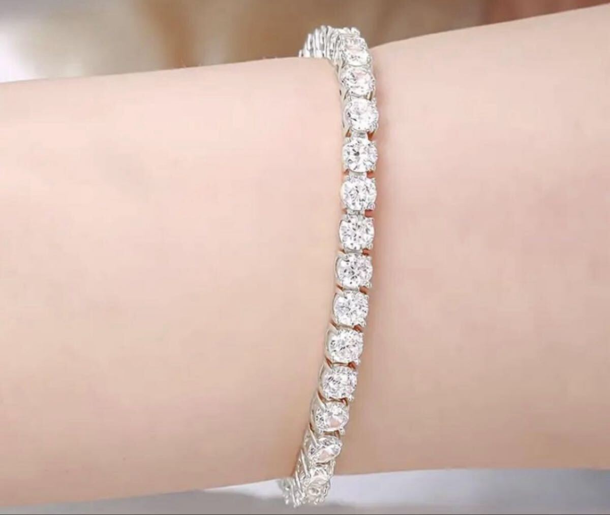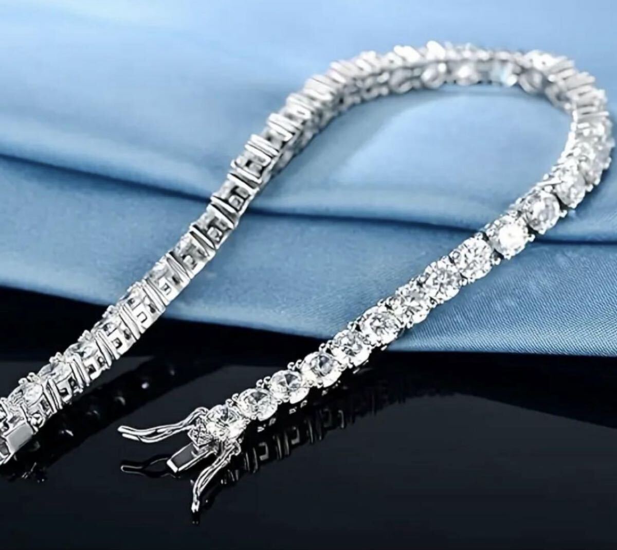 高品質♪ 4mm CZダイヤ テニスブレスレット K18WGコーティング★腕周り17.8cm