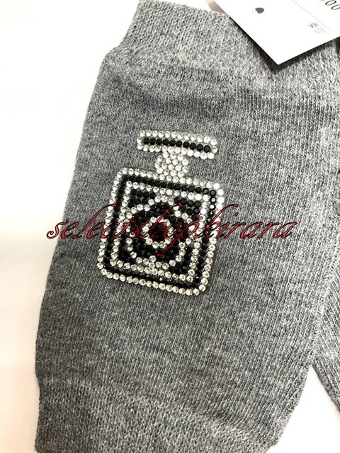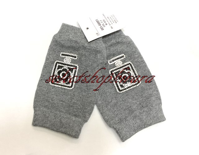 2025新作☆キラキラビジュー付き綿混ニット指抜き手袋☆グレー/香水