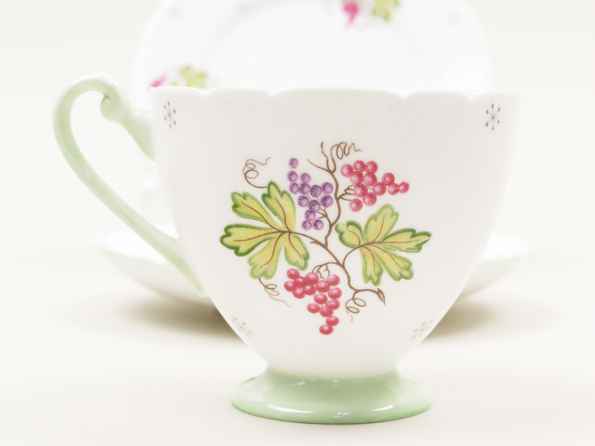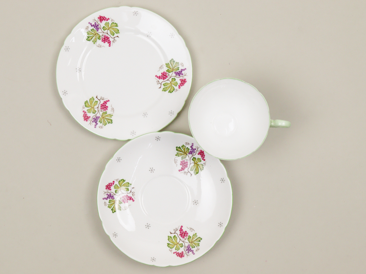 ・カップ 高さ:約7cm、直径:約8.5cm、容量:約190ml、約83g ・ソーサー 直径:約14.5cm、約125g ・プレート 直径:約15cm、約142g ※簡易測定につき多少の誤差がございます。 |