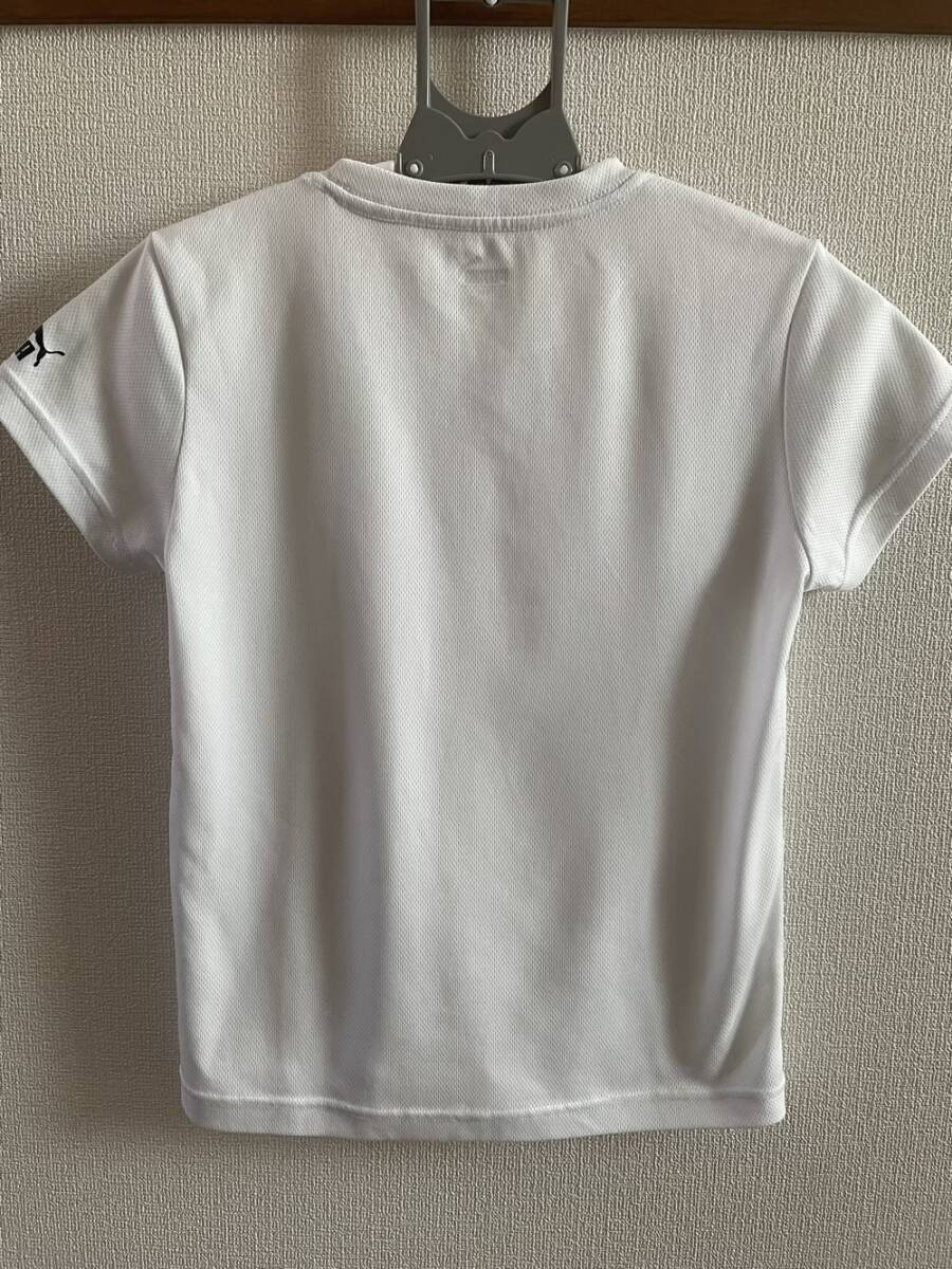 ドライ素材で、スポーツ等の汗をかくときに最適です。左腕にワンポイントマークがあります。