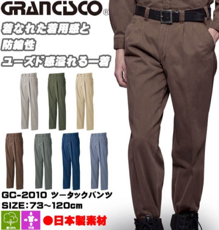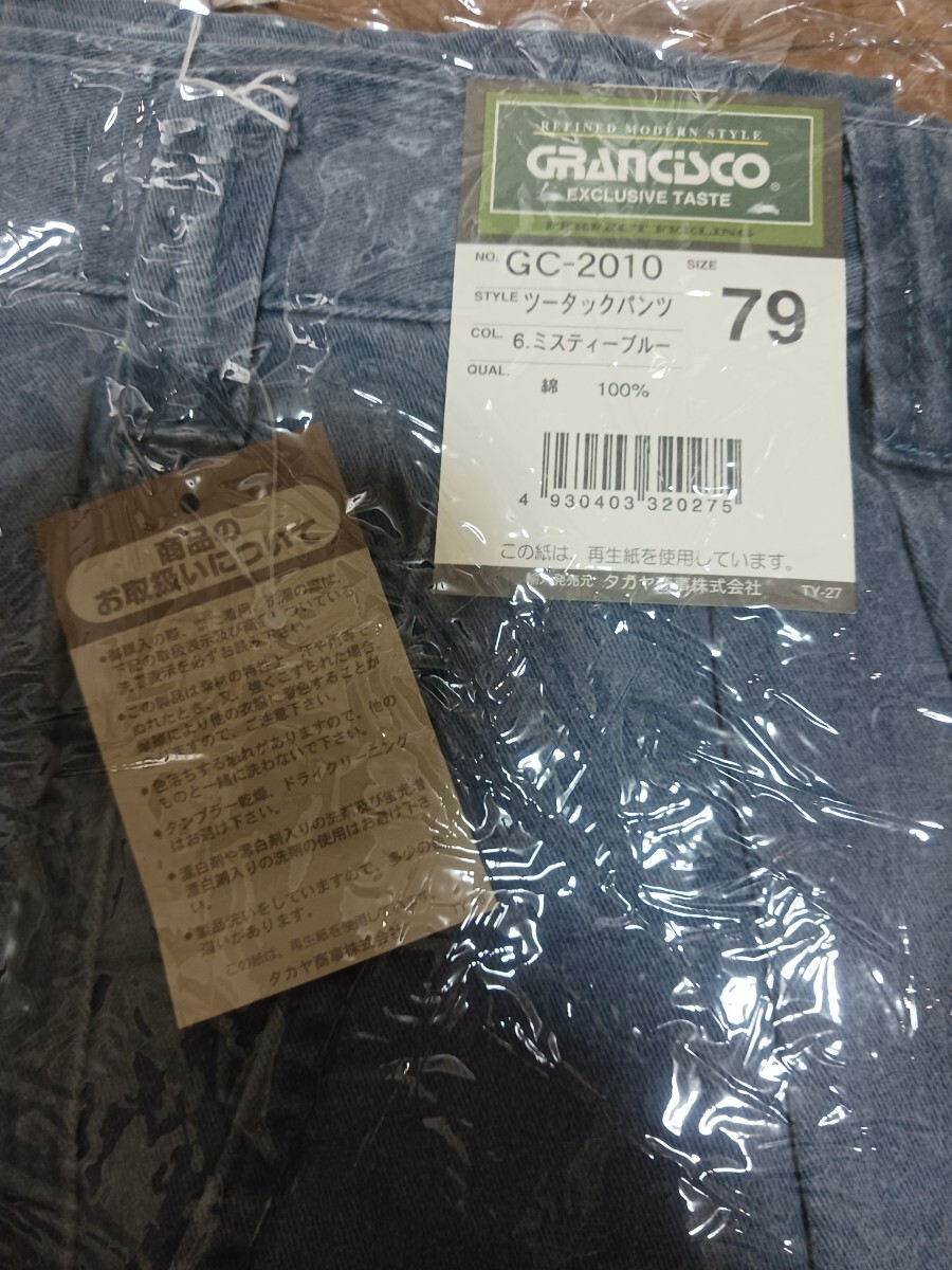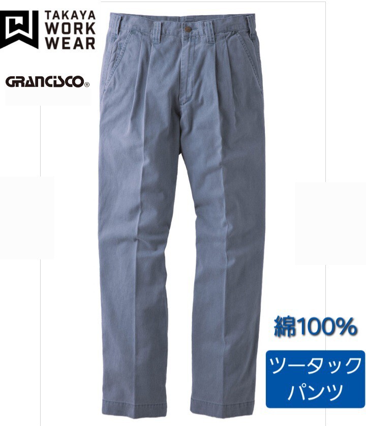 5501 TAKAYA GC-2010|綿100% 秋冬 ツータックパンツ|ミスティーブルー|W79㎝|新品未使用|タカヤ GRANCISCO|作業ズボン|スラックス