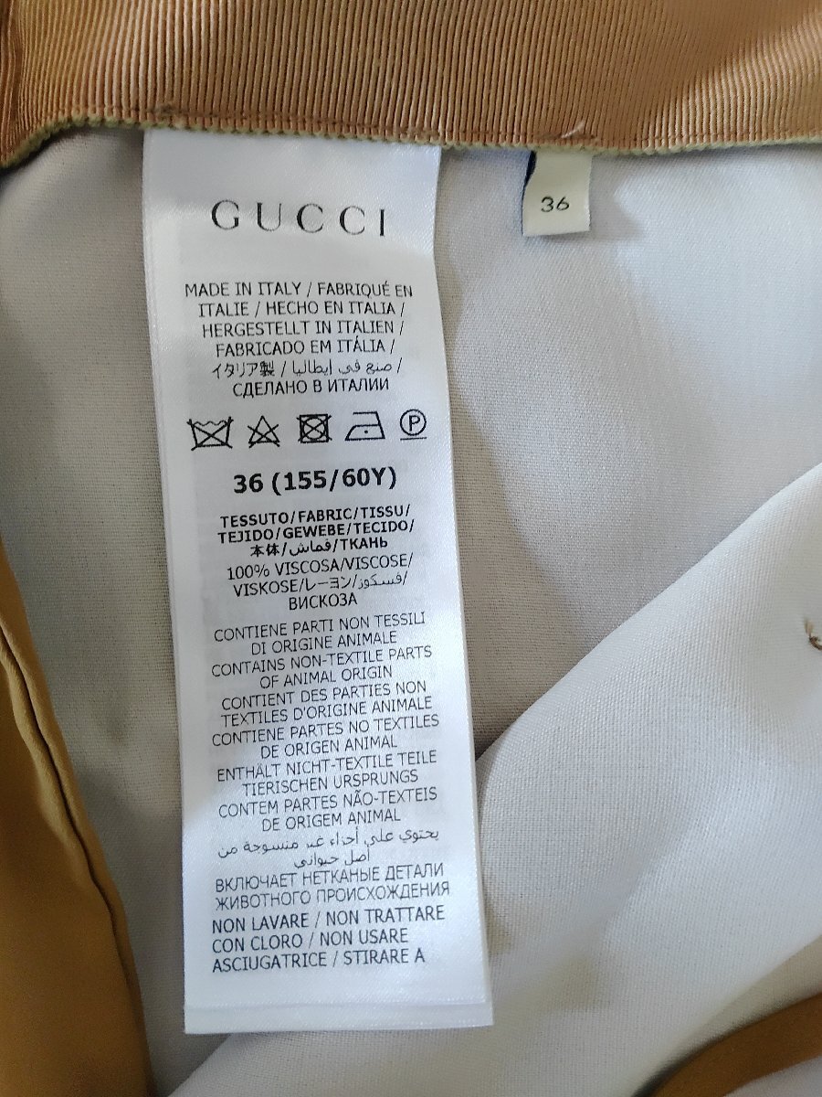 ■サイズ■ S | 表記:36 ■平置き実寸■ ウエスト 約64cm ヒップ 約88cm 股上丈 約24.5cm 股下丈 約63cm 腿幅 約24.5cm 裾幅 約20cm ■仕様 その他■ カーキ レーヨン100% ■製品特徴 / 状態 ◆ 洗練されたブランドデザイン 世界的ラグジュアリーブランド GUCCI(グッチ)のレディーススラックスパンツ。無駄のないミニマルなデザインが、ビジネスからカジュアルまで幅広く活躍します。 ◆ 上質な素材感 肌触りが良く、程よいハリ感を持つ高品質素材を採用。シルエットを美しく保ちつつ、快適な着用感を提供します。 ◆ 美しいシルエット 脚をすっきり長く見せるストレートライン。シンプルながらも上品で洗練された印象を演出します。 ◆ コーディネートの汎用性 ジャケットやブラウスと合わせたフォーマルスタイルから、カットソーやニットとのカジュアルスタイルまで幅広く対応可能。 ◆ 状態 特に気になるような汚れや傷みは無く、全体的に良いコンディションです。画像上の微妙な色の相違はご了承ください。 ・お支払い方法 | ・クレジットカード決済 | ・paypay銀行 ・楽天銀行 ・ゆうちょ銀行 ・発送方法 | ・ 特別配送